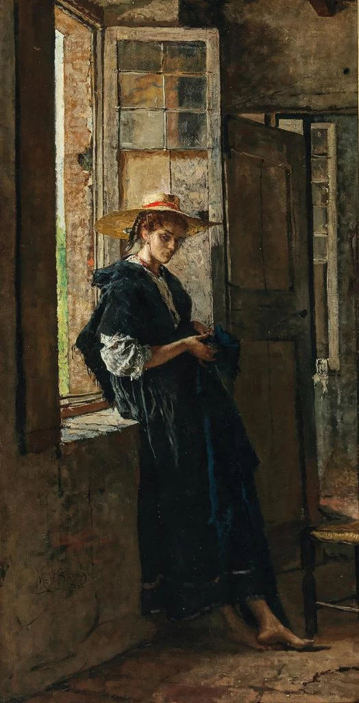 Kunstdruck | Dame im Strohhut am Fenster - Mosè Bianchi