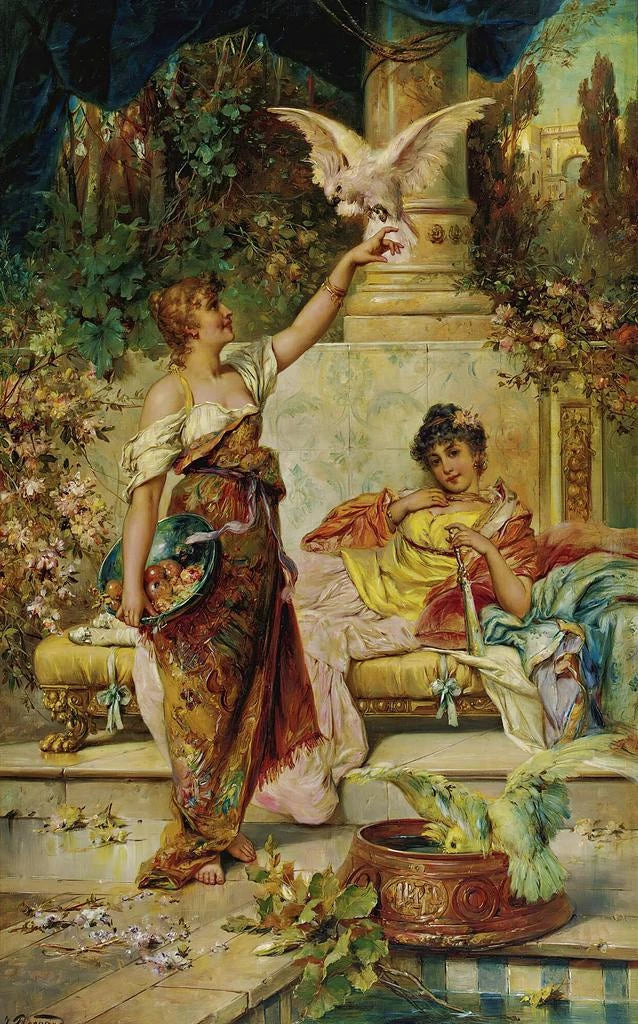 Hans Zatzka, aktiv Ende des 19. Jahrhunderts, ist bekannt für sein Talent, Romantik und Symbolismus in seinen werken zu verschmelzen. Ursprünglich aus Wien stammend, wurde er von den künstlerischen Strömungen seiner Zeit beeinflusst, während er einen eigenen Stil entwickelte. Seine Gemälde, oft bevölkert von idealisierten weiblichen Figuren und traumhaften Landschaften, zeugen von seinem Interesse an Schönheit und Harmonie. Zatzka konnte den Geist seiner Zeit einfangen und wurde zu einer bedeutenden Figur der Wiener Kunst, deren Erbe durch seine kreationen weiterlebt.