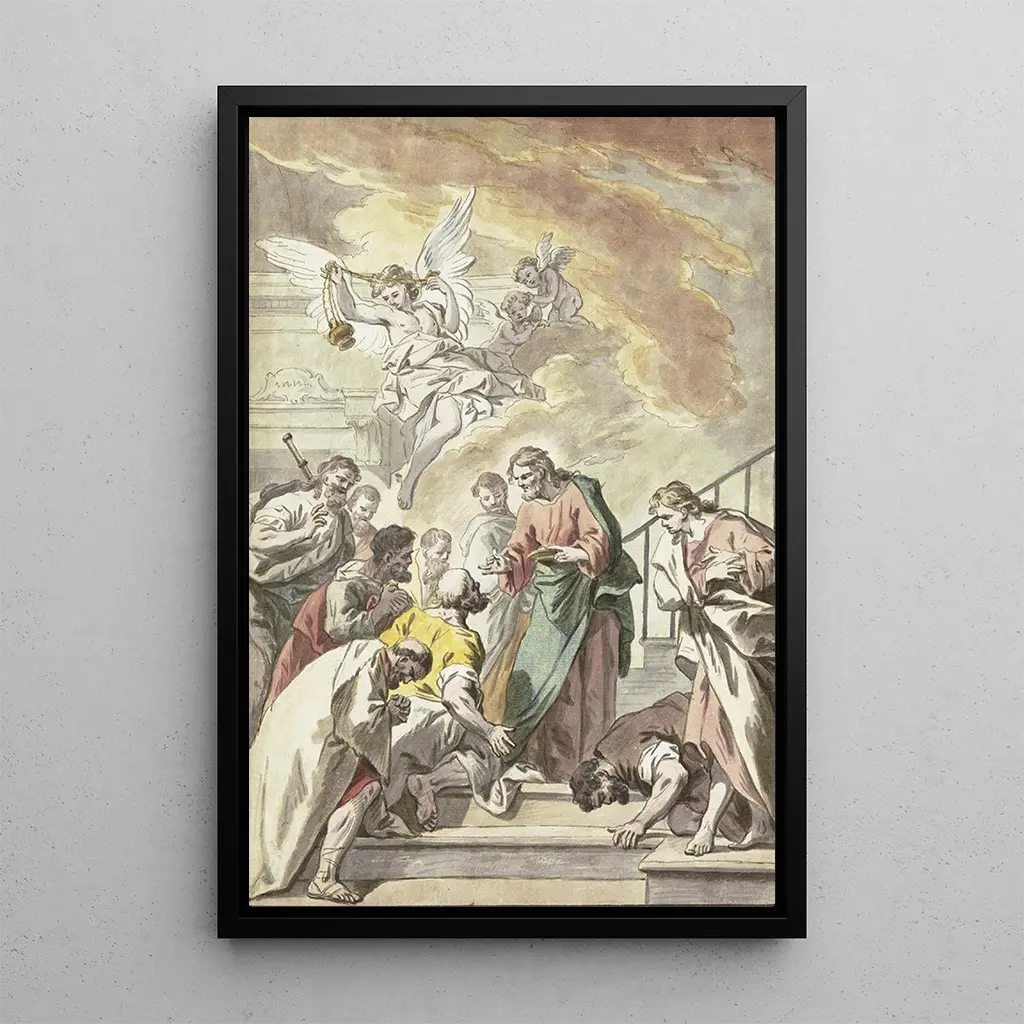 Der Christus beim Abendmahl: eine Szene heiligen Gemeinschafts In "Der Christus beim Abendmahl" bietet Jean Jouvenet eine bewegende Darstellung eines der bedeutendsten Momente der christlichen Tradition. Die Komposition, zentriert um den Christus, umgeben von seinen Aposteln, strahlt eine Atmosphäre der Andacht und Feierlichkeit aus. Die warmen Farben und das Spiel mit Licht verstärken die Tiefe der Emotionen, während die Gesichtsausdrücke der Figuren die Intensität des Moments widerspiegeln. Jouvenet gelingt es mit seiner technischen Meisterschaft, die Ernsthaftigkeit der Szene einzufangen und gleichzeitig eine gewisse Sanftheit zu bewahren, wodurch dieses Werk sowohl zugänglich als auch tief spirituell wirkt. Jean Jouvenet: ein Pfeiler des religiösen Barock Jean Jouvenet, Maler des 17. Jahrhunderts, wird häufig für seinen Beitrag zur französischen barocken Kunst gelobt, insbesondere im Bereich der religiösen malerei. In einem Kontext ausgebildet, in dem Kunst dazu diente, den Glauben zu stärken, entwickelte Jouvenet einen Stil, der Realismus und Idealisierung verbindet. Seine Werke, darunter "Der Christus beim Abendmahl", spiegeln ein tiefes Verständnis spiritueller Themen wider und zeigen die Fähigkeit, komplexe Emotionen zu vermitteln. Durch die Integration narrativer und symbolischer Elemente machte Jouvenet aus jedem Gemälde ein echtes visuelles und spirituelles Erlebnis und prägte seine Epoche auf unvergessliche Weise. Eine dekorative kunstdruck mit vielfältigen Vorzügen Der kunstdruck des Gemäldes "Der Christus beim Abendmahl" ist eine bereichernde dekorative Wahl für jeden Wohnraum. Ob im Wohnzimmer, Esszimmer oder Büro, dieses Leinwandbild bringt eine spirituelle und künstlerische Dimension in Ihre Dekoration. Die Druckqualität garantiert eine bemerkenswerte Treue zu den Details und Farben des Originalwerks, sodass Sie die Schönheit der Kreation von Jouvenet voll genießen können. Durch die Integration dieses kunstdrucks in Ihr Interieur schaffen Sie eine inspirierende Umgebung, die zum Nachdenken und zur Kontemplation einlädt, und feiern gleichzeitig das künstlerische Erbe des religiösen Barock.