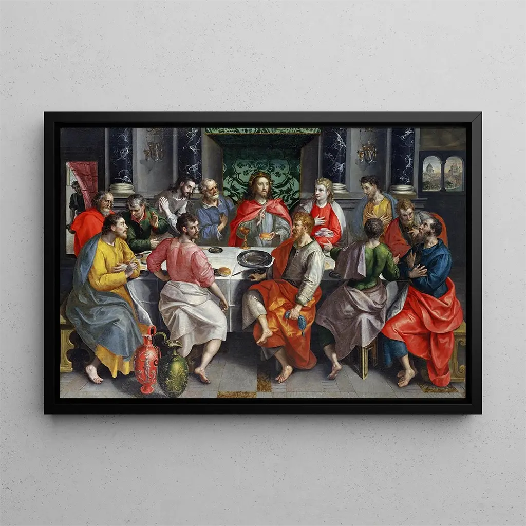 La Cène : eine Szene des Teilens und des Geheimnisses Die kunstdruck von La Cène, ein ikonisches Werk von Maerten de Vos, taucht uns in eine Atmosphäre ein, die sowohl heilig als auch intim ist. Die Figuren, um einen reich verzierten Tisch angeordnet, scheinen in einem Moment der Offenbarung und Spannung festgehalten zu sein. Die warmen Farben und die Schattenspiele verstärken das Drama der Szene, während die Technik des Hell-Dunkel-Kontrasts eine beeindruckende Tiefe verleiht. Jedes Gesicht erzählt eine Geschichte, jede Geste ist voller Bedeutung und lädt den Betrachter ein, diesen entscheidenden Moment der christlichen Tradition zu contemplieren. Maerten de Vos: ein Meister der flämischen Renaissance Maerten de Vos, flämischer Maler des 16. Jahrhunderts, ist bekannt für seine Fähigkeit, Elemente der Renaissance mit religiösen Themen zu verbinden. Beeinflusst von den großen Meistern seiner Zeit, entwickelte er einen einzigartigen Stil, der durch dynamische Kompositionen und eine sorgfältige Detailarbeit gekennzeichnet ist. La Cène ist in eine Zeit eingebettet, in der religiöse Kunst eine Wiedergeburt erlebt, und das Werk von Vos zeugt von der Bedeutung der visuellen Erzählung bei der Vermittlung spiritueller Werte. Sein Erbe besteht fort und inspiriert Generationen von Künstlern und Kunstliebhabern. Eine dekorative Anschaffung mit vielfältigen Vorzügen Eine kunstdruck von La Cène zu wählen, bedeutet, ein Meisterwerk zu erwerben, das Ihr Interieur bereichert, sei es im Wohnzimmer, im Büro oder im Schlafzimmer. Diese Leinwand, mit ihrer narrativen Fülle und ihrer fesselnden Ästhetik, zieht den Blick auf sich und regt Gespräche an. Die Qualität des kunstdrucks garantiert eine Treue zu den ursprünglichen Details, sodass Sie das Werk in seiner ganzen Pracht genießen können. Durch die Integration dieses Kunstwerks in Ihre Dekoration bringen Sie ein Stück Geschichte und Kultur in Ihr Zuhause und schaffen gleichzeitig eine warme und einladende Atmosphäre.