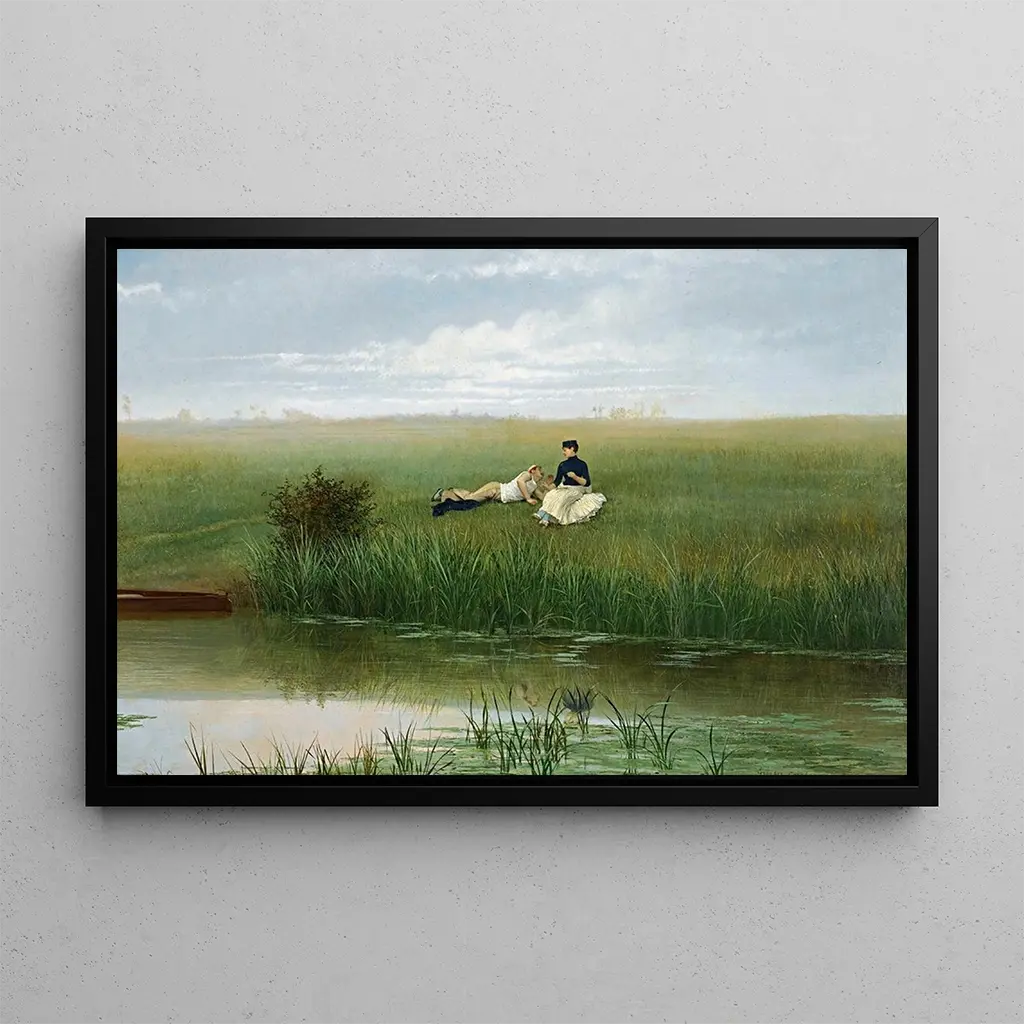 In "Le Repos des canotiers" fängt Georges Croegaert einen Moment der Gelassenheit am Flussufer ein. Die Canotiers, gekleidet in elegante Kostüme, ruhen sich auf einem Boot aus, umgeben von üppiger Natur. Die lebendige Farbpalette, dominiert von strahlendem Grün und beruhigendem Blau, vermittelt eine sommerliche und fröhliche Atmosphäre. Croegaerts Technik, die Realismus mit impressionistischen Akzenten verbindet, erweckt diese friedliche Szene zum Leben, wobei jedes Detail – von den Reflexionen auf dem Wasser bis zu den Gesichtsausdrücken der Figuren – zu einem vollständigen Eintauchen in diesen Moment der Geselligkeit beiträgt.