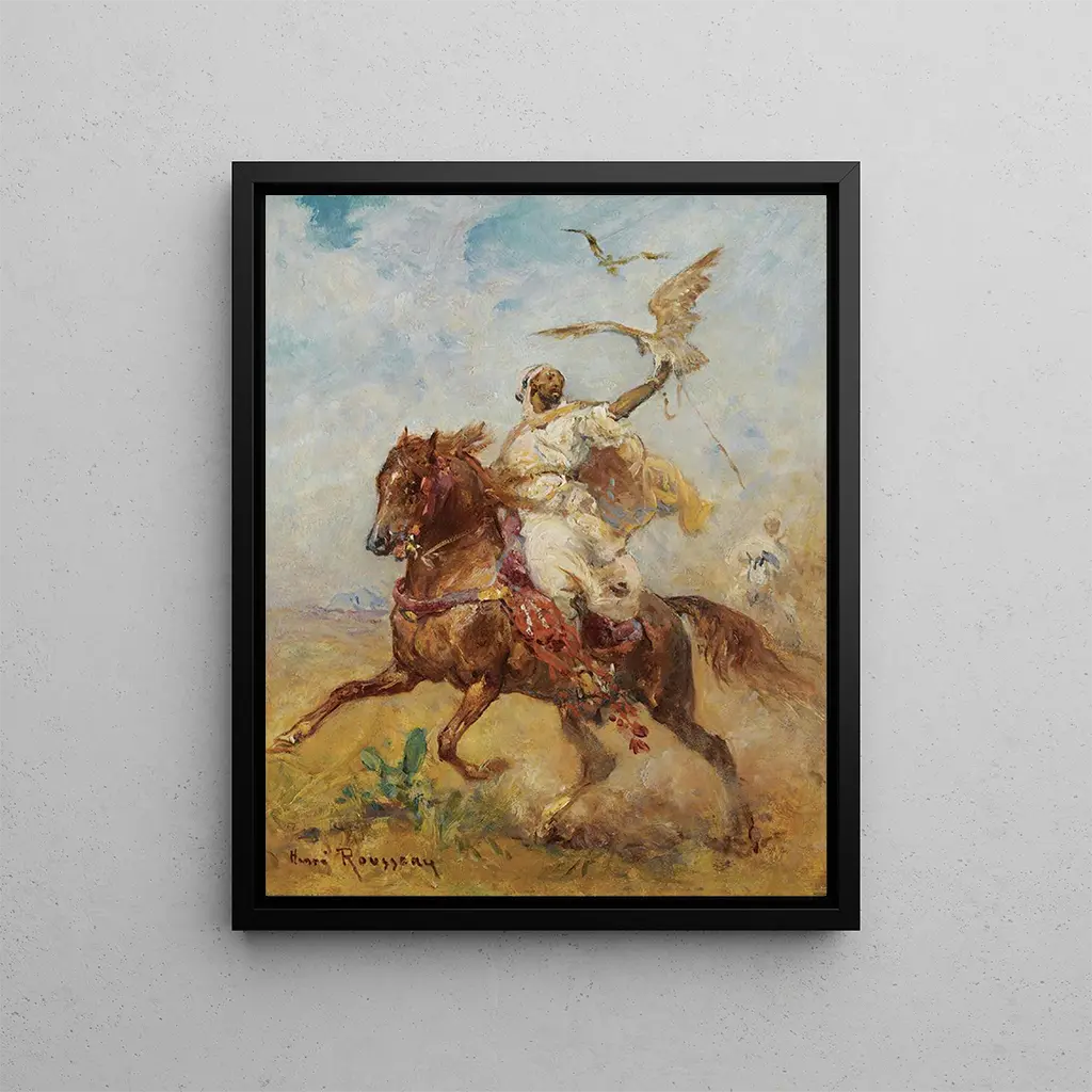 Le fauconnier : eine Szene von Adel und Tradition In "Le fauconnier" taucht Henri Émilien Rousseau uns in eine Atmosphäre voller Adel und Tradition ein. Das Gemälde zeigt einen Mann in historischer Kleidung, der einen Falken auf seiner Hand hält, ein Symbol für die Jagd und die Beherrschung. Die reichen und tiefgründigen Farben, die von erdigen Brauntönen bis zu üppigem Grün reichen, schaffen eine fesselnde visuelle Harmonie. Rousseaus Technik, die Realismus und impressionistische Akzente verbindet, erweckt jedes Detail zum Leben, vom Gefieder des Vogels bis zu den Texturen der Kleidung. Dieses Werk lädt zur Kontemplation ein und evoziert eine Welt, in der Mensch und Natur in perfekter Symbiose koexistieren. Henri Émilien Rousseau : ein Meister des Realismus im Herzen des 19. Jahrhunderts Henri Émilien Rousseau, aktiv im 19. Jahrhundert, ist ein Künstler, dessen Arbeit durch seine Liebe zum Detail und seine Achtung vor den künstlerischen Traditionen hervorsticht. Beeinflusst von Realismus und Impressionismus, konnte er Momente des täglichen Lebens mit einer einzigartigen Sensibilität einfangen. Rousseau hat häufig Themen im Zusammenhang mit Natur und ländlichem Leben erforscht, was die Anliegen seiner Zeit widerspiegelt. Sein Werk "Der Falkner" zeugt von dieser Suche nach Authentizität und einer tiefen Bewunderung für die Traditionen der Jagd, ein Thema, das bei den Aristokraten seiner Zeit sehr beliebt war. Sein Beitrag zur französischen Kunst bleibt bedeutend und markiert einen Übergang zu moderneren Stilen. Eine dekorative Anschaffung mit vielfältigen Vorzügen Die reproduction von "Le fauconnier" ist ein dekoratives Stück, das Ihren Innenraum bereichern wird, sei es im Wohnzimmer, Büro oder Schlafzimmer. Die Druckqualität garantiert eine bemerkenswerte Treue zu den Farben und Details des Originalwerks, sodass Sie die Ästhetik von Rousseau in Ihrem Wohnraum genießen können. Dieses Bild verleiht eine Note von Eleganz und Raffinesse und weckt die Bewunderung der Besucher. Mit der Wahl dieses Leinwandbildes entscheiden Sie sich für ein dekoratives Element, das Geschichte, Kunst und Schönheit vereint und so eine warme und einladende Atmosphäre schafft.