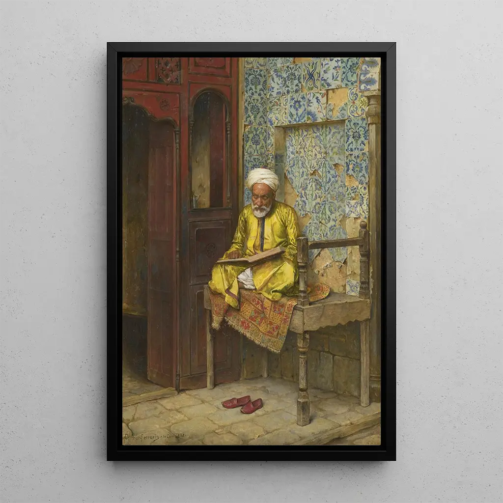 Arthur von Ferraris, Maler des 19. Jahrhunderts, ist bekannt für seine Werke, die die Themen des Orientalismus erkunden. Beeinflusst von seinen Reisen nach Ägypten und in den Nahen Osten, lässt er sich von den Landschaften, Kulturen und lokalen Traditionen inspirieren. Sein Stil zeichnet sich durch eine besondere Aufmerksamkeit für Details und eine reiche Farbpalette aus, die Licht und Atmosphäre der dargestellten Orte einfängt. "Der gelehrte Mann aus Kairo" ist in eine Zeit eingebettet, in der der Westen immer mehr Interesse an orientalischen Kulturen zeigt, und Ferraris’ Werk zeugt von dieser Faszination, während es gleichzeitig eine Reflexion über die Bedeutung von Wissen bietet.
