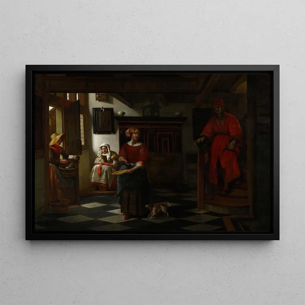 Le Vendeur d'asperges : eine lebendige Szene des Alltagslebens In diesem Werk taucht Pieter de Hooch in eine lebendige Marktszene ein, in der ein kunstdruck von Spargelverkäufer die Aufmerksamkeit der Passanten auf sich zieht. Die warmen, erdigen Farben, verbunden mit einem sanften Licht, schaffen eine einladende und vertraute Atmosphäre. Die sorgfältig gestaltete Komposition hebt die Details der frischen Gemüse hervor und integriert gleichzeitig Figuren, die das Gemälde lebendig machen. Jedes Element scheint eine Geschichte zu erzählen und lädt den Betrachter ein, sich in das Herz dieser sozialen Interaktion zu versetzen, bei der Natur und Menschlichkeit aufeinandertreffen. Pieter de Hooch: ein Meister des niederländischen Genres Pieter de Hooch, aktiv im 17. Jahrhundert, ist bekannt für seine Szenen des Alltagslebens, die oft eine bemerkenswerte Ruhe und Intimität ausstrahlen. Beeinflusst von Zeitgenossen wie Vermeer, zeichnet sich Hooch durch seine Fähigkeit aus, mit Licht und Raum zu spielen. Seine Werke, die häufig Innenräume und menschliche Interaktionen zeigen, zeugen von einer Epoche, in der Realismus und die Darstellung des häuslichen Lebens im niederländischen Kunst eine bedeutende Rolle spielten. Hooch hat die Essenz des bürgerlichen Lebens eingefangen und ist somit ein unverzichtbarer Künstler seiner Zeit. Eine dekorative anschaffung mit vielfältigen vorteilen Der kunstdruck des Gemäldes Le Vendeur d'asperges ist eine ideale Wahl, um Ihre Inneneinrichtung zu bereichern. Ob im Wohnzimmer, im Büro oder im Schlafzimmer, diese leinwand bringt eine Note von Wärme und Geselligkeit. Die Druckqualität garantiert eine Treue zu den Farben und Details des Originalwerks, sodass Sie seine ästhetische Anziehungskraft im Alltag genießen können. Durch die Integration dieses kunstdrucks in Ihren Raum laden Sie nicht nur Kunst in Ihr Leben ein, sondern auch ein Stück niederländischer Geschichte und Kultur.