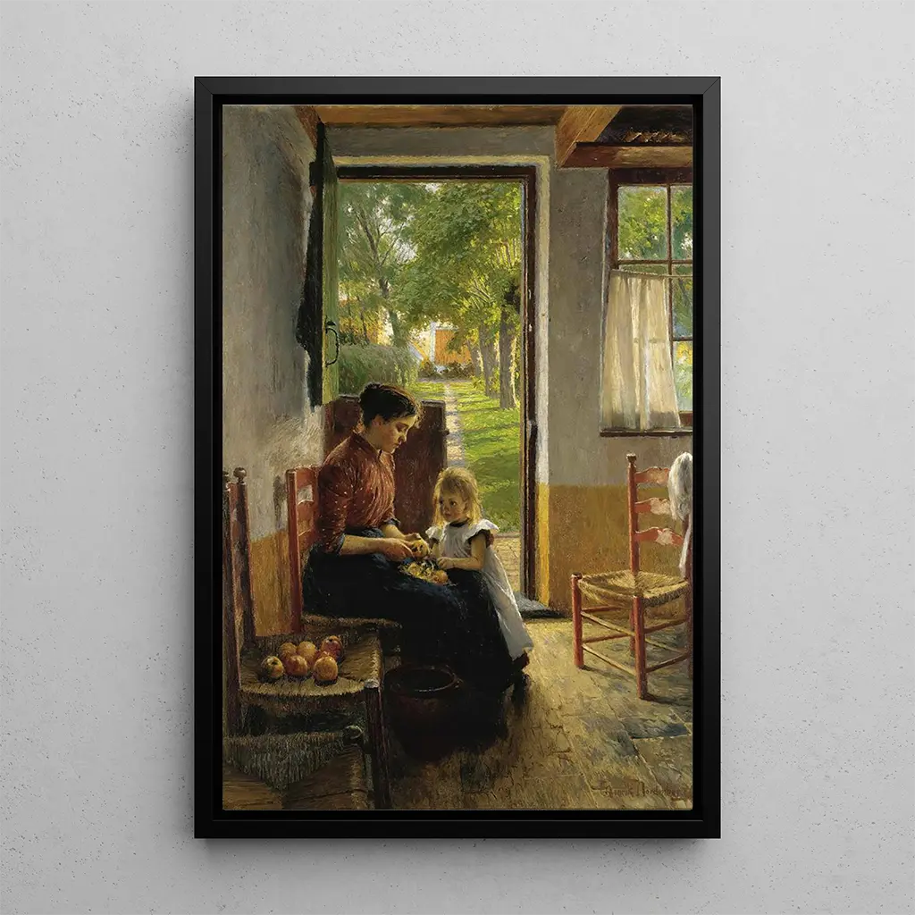 Le petit assistant de maman : ein liebevoller Blick auf die Kindheit In "Le petit assistant de maman" fängt Henrik Nordenberg die Zärtlichkeit der Kindheit durch eine zarte Komposition ein. Das Gemälde zeigt einen jungen Jungen, der sich auf seine Aufgaben konzentriert, umgeben von einer Palette warmer und beruhigender Farben. Die Nuancen von Braun und Gelb schaffen eine gemütliche Atmosphäre, während das sanfte Licht, das das Gesicht des kleinen Protagonisten erleuchtet, ein Gefühl von Gelassenheit vermittelt. Die Technik von Nordenberg, die Realismus und Impressionismus verbindet, ermöglicht es, die Zärtlichkeit des Moments zu spüren, als könnte man die Flüstertöne der Kindheit und das entfernte Lachen hören. Henrik Nordenberg : ein Meister des skandinavischen Realismus Henrik Nordenberg, aktiv am Ende des 19. Jahrhunderts, ist ein norwegischer Künstler, dessen Werk im Stil des Realismus steht. Beeinflusst von den großen Meistern seiner Zeit, sucht er, das tägliche Leben mit einer besonderen Sensibilität darzustellen. Nordenberg zeichnet sich durch seine Fähigkeit aus, einfache, aber emotionale Momente einzufangen, wie dieses Werk zeigt. Seine künstlerische Herangehensweise spiegelt die sozialen Anliegen seiner Epoche wider, in der die Kindheit und die Familie eine zentrale Rolle in der Gesellschaft spielen. Durch die Hervorhebung dieser Themen trägt er zur Entwicklung der skandinavischen Kunst hin zu einer persönlicheren und menschlicheren Darstellung bei. Eine dekorative Anschaffung mit vielfältigen Vorzügen Der Kunstdruck von "Le petit assistant de maman" ist ein dekoratives Stück, das Ihr Zuhause bereichern wird. Ob im Wohnzimmer, im Büro oder im Schlafzimmer, dieses Gemälde bringt eine Note von Wärme und Nostalgie. Seine Qualität als Kunstdruck garantiert eine detailgetreue Wiedergabe der Farben und Details des Originalwerks, sodass Sie die ganze Schönheit dieser berührenden Szene genießen können. Mit seiner ästhetischen Anziehungskraft wird diese Leinwand zu einem echten Blickfang, der Gespräche und Emotionen bei Ihren Gästen weckt. Gönnen Sie sich ein Stück Kindheit mit diesem zeitlosen Kunstwerk.