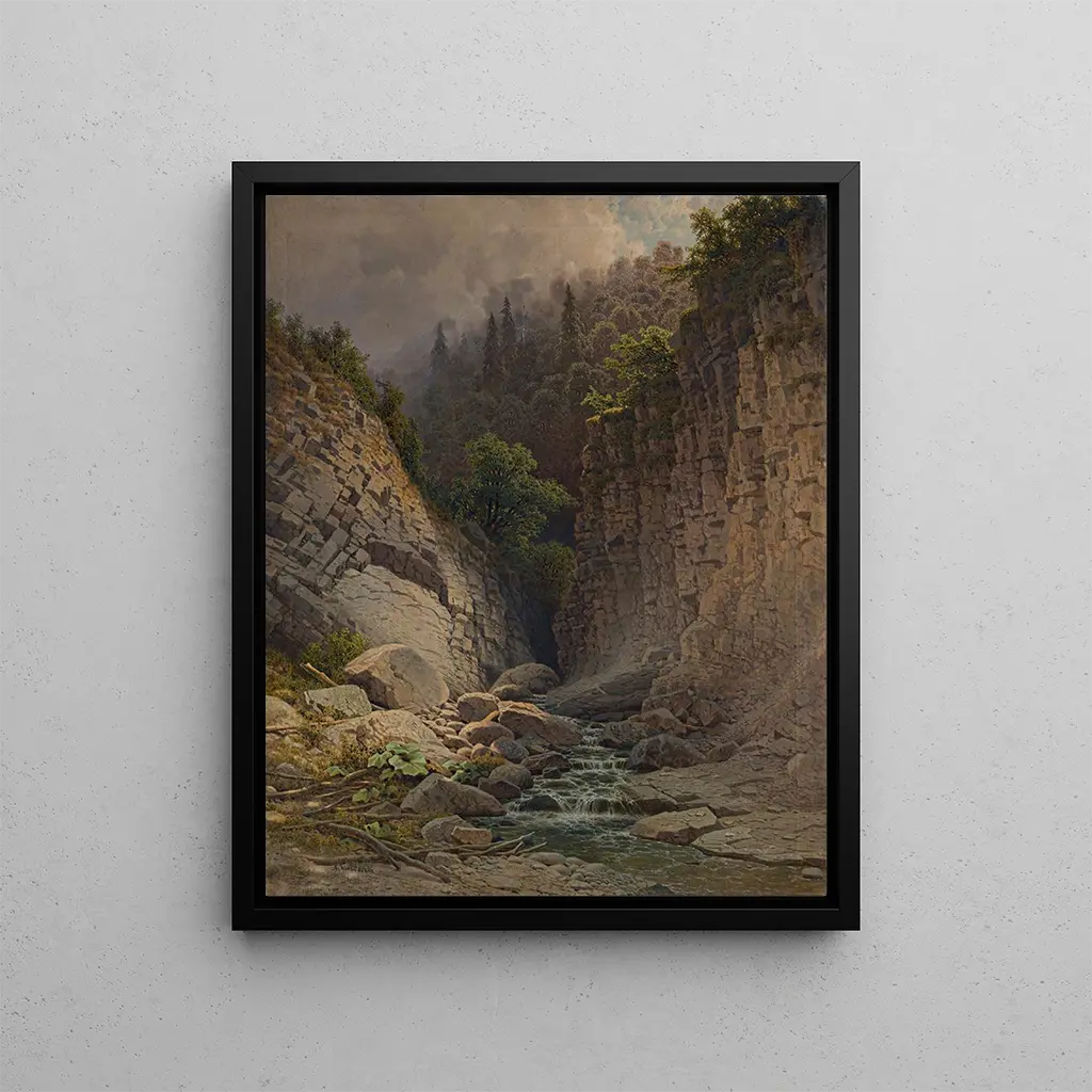 Entdecken Sie das Meisterwerk Le Ravin von Ilya Nikolaevich Zankovsky, einem bedeutenden Künstler der russischen Realismusbewegung. Dieses beeindruckende Gemälde fängt die dramatische Schönheit einer steilen Schlucht ein, die mit lebendigen Farben und meisterhafter Technik zum Leben erweckt wird.