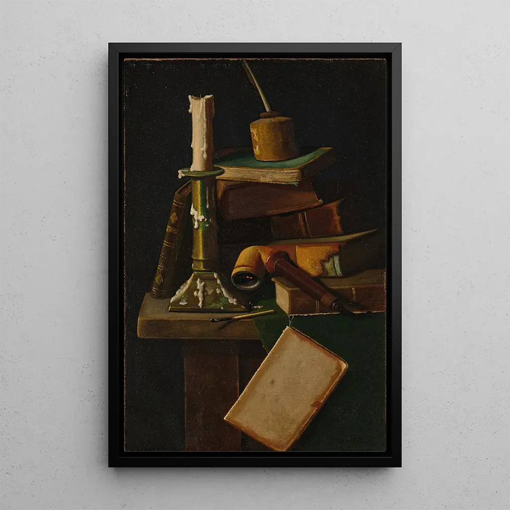 John Frederick Peto, aktiv gegen Ende des 19. Jahrhunderts, ist bekannt für sein außergewöhnliches Talent im Bereich des Trompe-l'œil. Beeinflusst vom Realismus und Symbolismus, gelang es ihm, die Essenz alltäglicher Gegenstände mit bemerkenswerter Präzision einzufangen. Peto, der oft von seinen Zeitgenossen in den Schatten gestellt wurde, hinterließ dennoch ein nachhaltiges Erbe in der Kunstwelt. Seine Arbeiten spiegeln eine Epoche wider, in der die Kunst des realistischen Malens florierte, und er hob sich durch seine Fähigkeit hervor, gewöhnliche Gegenstände in faszinierende Kunstwerke zu verwandeln. Die Tafel der Gelehrten ist ein perfektes Beispiel für sein kreatives Genie und sein Engagement für eine getreue Darstellung der Realität.
