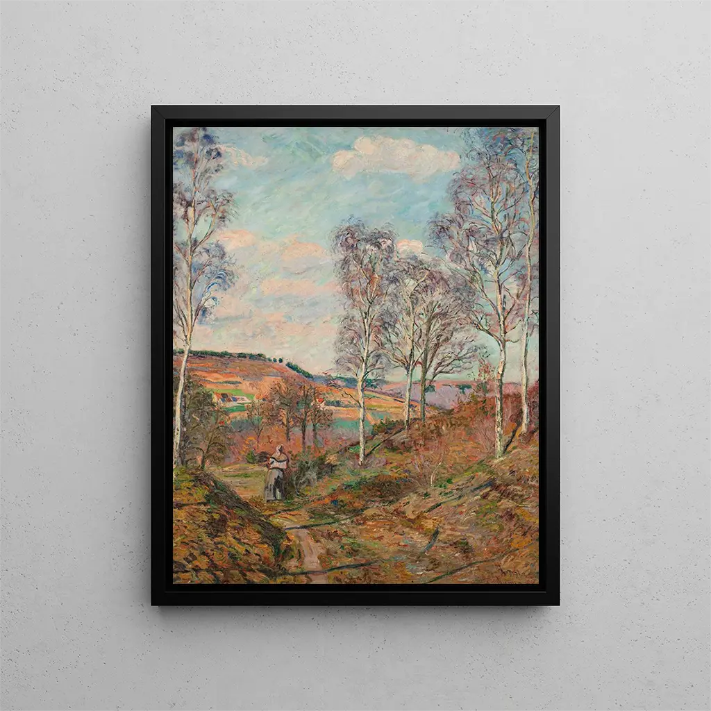 Im weiten Panorama des Impressionismus hebt sich "Le chemin vers la vallée" von Armand Guillaumin durch seine Helligkeit und seine Atmosphäre voller Gelassenheit hervor. Dieses Werk, das einen Spaziergang in der Natur evoziert, lädt den Betrachter ein, in eine Landschaft einzutauchen, in der Himmel und Erde in einer farbenfrohen Harmonie aufeinandertreffen. Guillaumin, der oft weniger bekannt ist als seine Zeitgenossen, gelingt es, die Essenz des Lichts einzufangen und jeden Pinselstrich zu einer Ode an die Schönheit der natürlichen Welt zu machen. Die Kunstdruck dieses Werks ermöglicht es, die Magie dieses angehaltenen Moments neu zu entdecken, in dem die Zeit sich im Rhythmus der Nuancen zu dehnen scheint.