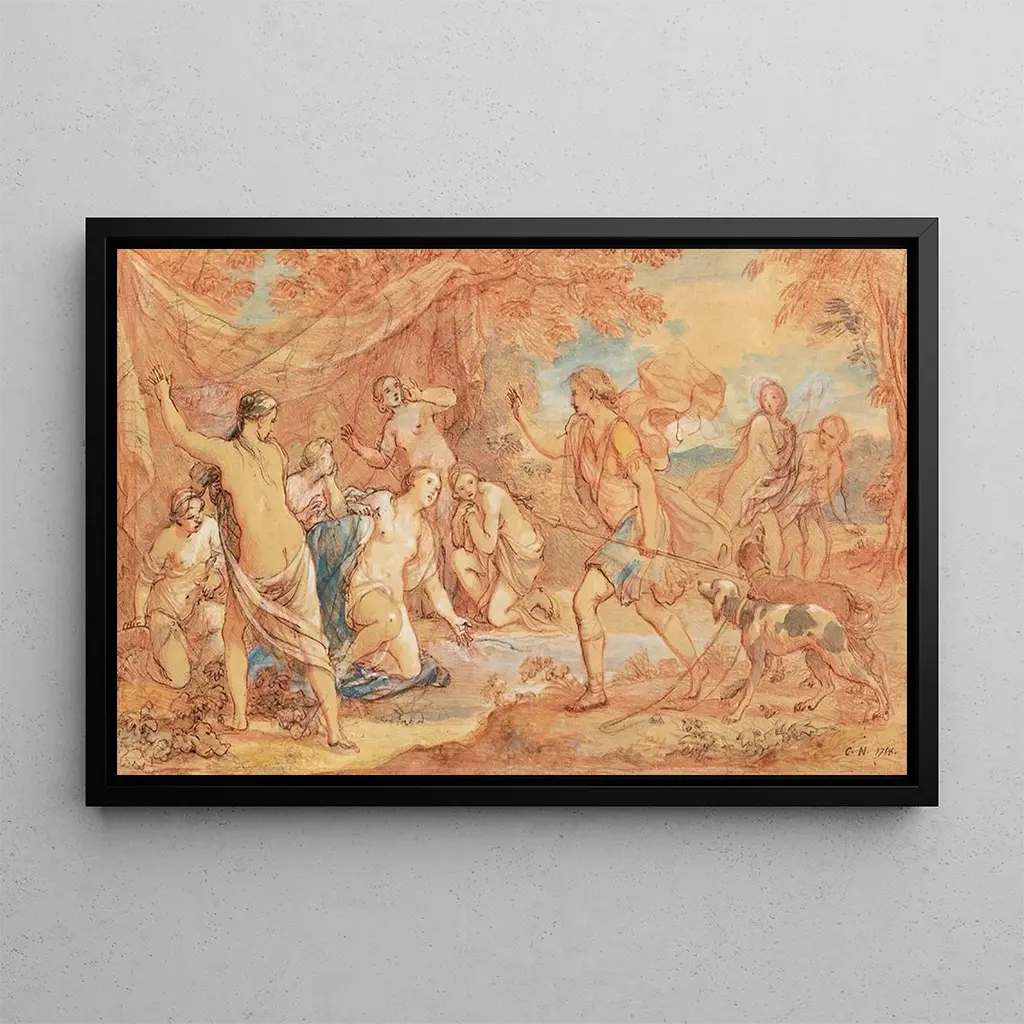Diane und Actéon: eine mythologische Szene voller Spannung In dieser kunstdruckversion von Diane und Actéon fängt Charles-Joseph Natoire einen Moment dramatischer Spannung zwischen den beiden mythologischen Figuren ein. Die dynamische Komposition, bei der sich die Körper verschlingen, wird durch eine Palette warmer Farben und Schattenwürfe betont, die eine Atmosphäre schaffen, die sowohl sinnlich als auch tragisch ist. Die detaillierten Faltenwürfe und Gesichtsausdrücke zeugen vom Talent Natoires, Leben und Emotionen durch die Malerei zu vermitteln. Der Blick von Diane, gleichzeitig überrascht und zornig, steht im Kontrast zur verletzlichen Haltung von Actéon und bietet eine fesselnde Interpretation dieses klassischen Mythos. Charles-Joseph Natoire: ein Meister des französischen Rokoko Charles-Joseph Natoire, aktiv im 18. Jahrhundert, ist ein emblematischer Vertreter des Rokoko-Stils, der durch seine Leichtigkeit und Eleganz gekennzeichnet ist. Ausgebildet an der königlichen Akademie der Malerei und Bildhauerei, wurde Natoire von Künstlern wie François Boucher beeinflusst, mit denen er die Liebe zu mythologischen Themen und raffinierten Kompositionen teilt. Seine Karriere blühte am französischen Hof, wo er zahlreiche Werke für prestigeträchtige Auftraggeber schuf. Natoire verstand es, klassische Technik mit moderner Sensibilität zu verbinden, was ihm ermöglichte, sich in einem sich ständig wandelnden künstlerischen Umfeld hervorzuheben. Eine dekorative Anschaffung mit vielfältigen Vorzügen Dieser kunstdruck von Diane und Actéon ist ein ideales Dekorationsstück, um Ihr Interieur zu bereichern, sei es im Wohnzimmer, im Büro oder im Schlafzimmer. Seine Druckqualität und Treue zum Originalwerk machen ihn zu einer attraktiven Wahl für Kunstliebhaber und Mythologie-Enthusiasten. Durch die Integration dieses Bildes in Ihre Dekoration verleihen Sie Ihrem Raum einen Hauch von Eleganz und Kultur. Die ästhetische Anziehungskraft dieses Leinwandbildes wird Ihre Gäste begeistern und anregende Gespräche über Kunst und Geschichte fördern.