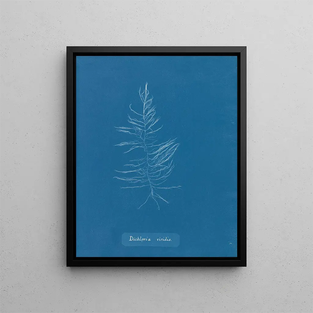 Im weiten Panorama der Kunstgeschichte heben sich bestimmte Werke durch ihre Fähigkeit hervor, das Wesen der Natur selbst einzufangen. "Dichloria viridis - Anna Atkins" ist ein perfektes Beispiel dafür. Dieses ikonische Werk, geschaffen von der Pionierin der botanischen Fotografie, Anna Atkins, entführt uns in eine Welt, in der Wissenschaft und Kunst auf harmonische Weise aufeinandertreffen. Durch diesen Kunstdruck wird der Betrachter eingeladen, die zarte und komplexe Schönheit der Algen zu erkunden, während er sich gleichzeitig von der Präzision und Poesie verzaubern lässt, die in jedem Detail mitschwingen. Atkins, die erste Frau, die ein illustriertes Buch mit Fotografien veröffentlichte, revolutionierte unsere Wahrnehmung der Natur, ehrte die Flora und stellte gleichzeitig die künstlerischen Konventionen ihrer Zeit in Frage.