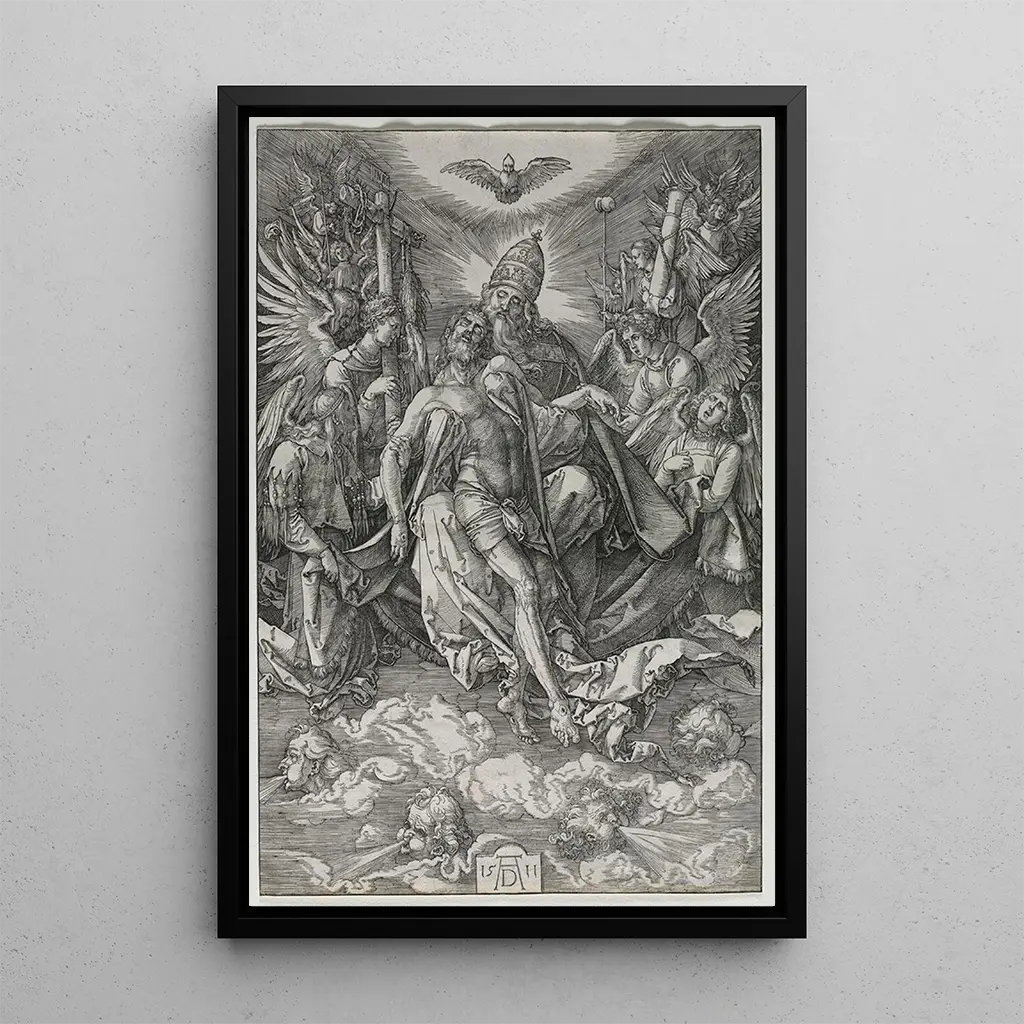 Die Wahl einer reproduction der Heiligen Dreifaltigkeit bereichert Ihren Lebensraum mit einem Werk von großer visueller und spiritueller Kraft. Ob im Wohnzimmer, im Büro oder im Schlafzimmer, dieses Bild bringt eine heilige und inspirierende Dimension. Die Qualität der reproduction gewährleistet eine bemerkenswerte Treue zu den Details des Originalwerks, sodass man die ganze Kraft von Dürers Vision spüren kann. Ihre ästhetische Anziehungskraft, verstärkt durch lebendige Farben und eine ausgewogene Komposition, macht sie zur perfekten Wahl für alle, die Kunst und Dekoration verbinden möchten. Durch die Integration dieser reproduction schaffen Sie eine Umgebung voller Ruhe und Schönheit.