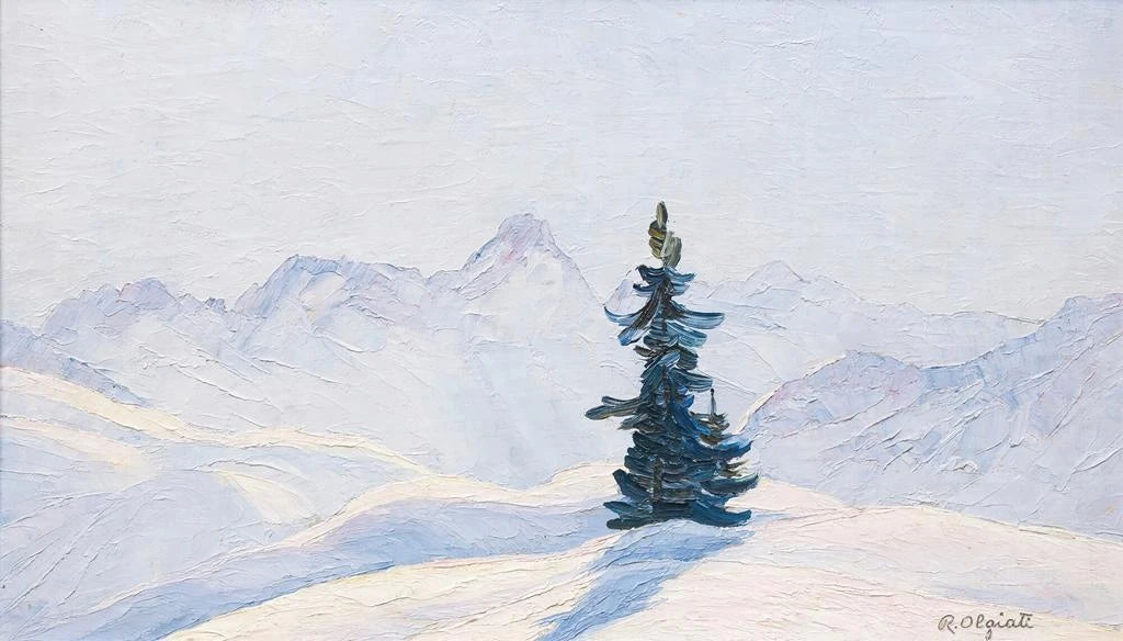 Rodolfo Olgiati, schweizerischer maler des 20. Jahrhunderts, ist bekannt für seine Fähigkeit, die Schönheit der Alpenlandschaften einzufangen. Beeinflusst vom Impressionismus, hat er einen persönlichen stil entwickelt, der den Fokus auf Licht und Farben legt. „La Corne d'Arosa“ spiegelt seine Verbundenheit mit der Natur und seinen Wunsch wider, Emotionen durch seine Werke zu vermitteln. In einer Zeit, in der sich die Kunst modernisiert, bleibt Olgiati klassischen Themen treu, bringt aber eine zeitgenössische Note ein. Seine Arbeit ist eine Hommage an die Majestät der Schweizer Berge und an die Ruhe, die sie ausstrahlen.