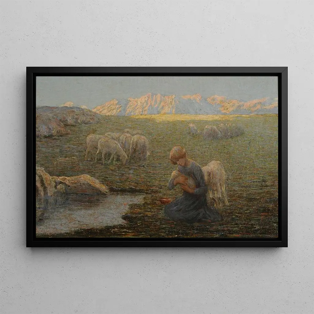 La brebschaft: eine Szene voller Zärtlichkeit Die kunstdruck von La brebis malade von Emilio Longoni taucht uns in eine Atmosphäre der Sanftheit und des Mitgefühls ein. Dieses Werk, geschaffen mit warmen Farben und zarten Nuancen, zeigt eine verletzte Schafherde, umgeben von menschlichen Figuren, die tiefes Fürsorgegefühl ausdrücken. Die Technik des Künstlers, die Realismus und Impressionismus verbindet, schafft eine berührende Stimmung, in der das Licht eine wesentliche Rolle spielt und die Gesichter sowie Details der Landschaft erleuchtet. Die Komposition, die sich auf das Tier konzentriert, ruft eine starke Verbindung zwischen Mensch und Natur hervor und lädt den Betrachter ein, die spürbare Emotion dieser Szene zu fühlen. Emilio Longoni: ein Meister des sozialen Realismus Emilio Longoni, italienischer Maler des 19. Jahrhunderts, ist bekannt für sein künstlerisches Engagement zugunsten der arbeitenden Klassen. Beeinflusst vom Realismus, sucht er, das tägliche Leben und die Kämpfe gewöhnlicher Menschen einzufangen. Longoni war während einer Zeit sozialer Umbrüche in Italien aktiv, was sein Werk prägte. Seine Gemälde, oft von Menschlichkeit geprägt, zeugen von einer Sensibilität gegenüber den Ärmsten. Der kunstdruck von La brebis malade passt in diese Tradition und zeigt nicht nur einen Moment des Lebens, sondern auch eine Reflexion über Verletzlichkeit und Solidarität. Sein Stil, zugleich bewegend und zugänglich, hat einen bleibenden Eindruck in der Kunstgeschichte hinterlassen. Eine dekorative Anschaffung mit vielfältigen Vorzügen Der kunstdruck von La brebis malade ist ein dekoratives Stück, das jeden Raum bereichern wird, sei es ein Wohnzimmer, ein Büro oder ein Schlafzimmer. Seine hochwertige, detailgetreue Druckqualität und seine ästhetische Anziehungskraft machen ihn zur idealen Wahl für alle, die ihrer Dekoration eine menschliche Note verleihen möchten. Durch die Integration dieses Bildes verleihen Sie Ihrem Raum eine warme und einladende Atmosphäre und regen gleichzeitig Gespräche über Kunst und Mitgefühl an. Dieses Werk, schön und bedeutungsvoll zugleich, ist eine Einladung zur Reflexion und Empathie und stellt eine wertvolle Ergänzung Ihrer Sammlung dar.