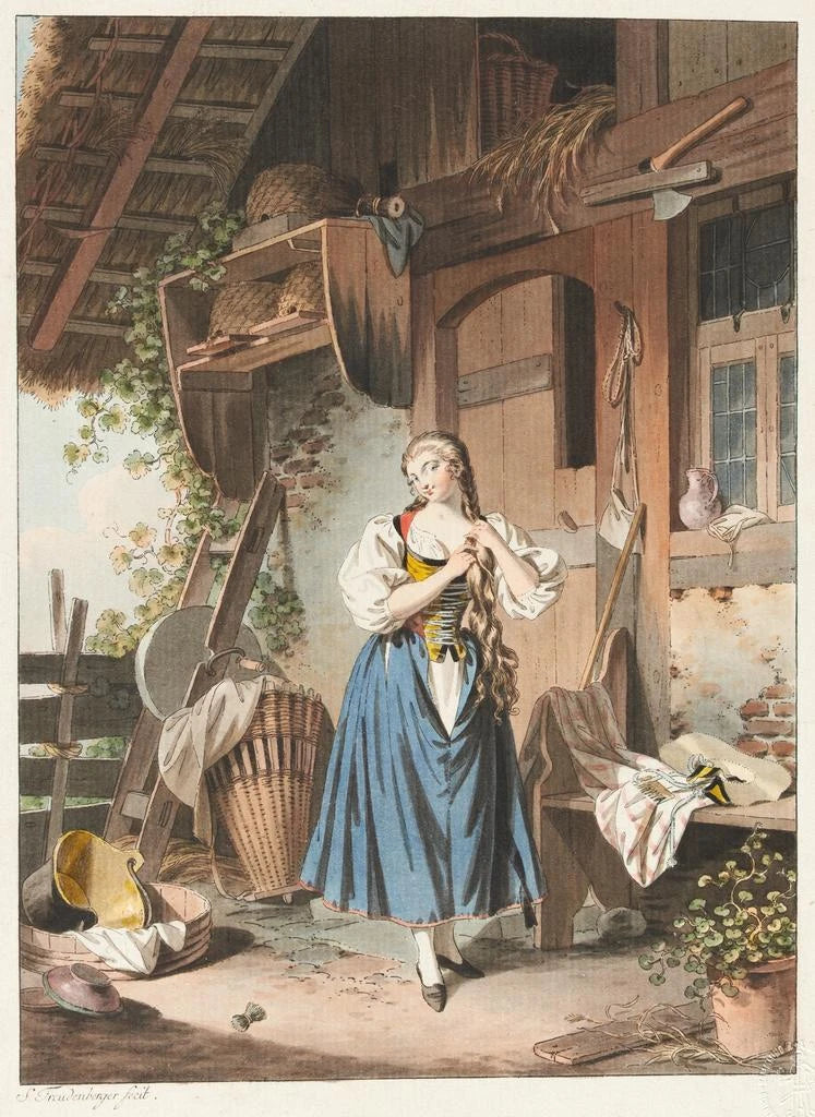 Die bucolische Toilette, ein ikonisches Werk von Sigmund Freudenberger, beschreibt eine intime und ruhige Szene, in der Natur und Alltag aufeinandertreffen. Die sanften und natürlichen Farben, dominiert von beruhigenden Grüntönen und goldenen Lichtakzenten, schaffen eine warme und einladende Atmosphäre. Die Technik von Freudenberger, geprägt von einem zarten Realismus, ermöglicht es, die Details der Gesichter und Kleidung der Figuren einzufangen, während die umgebende Landschaft harmonisch integriert wird. Dieses Bild lädt den Betrachter ein, in einen Moment der Ruhe einzutauchen, in dem die Zeit stillzustehen scheint.