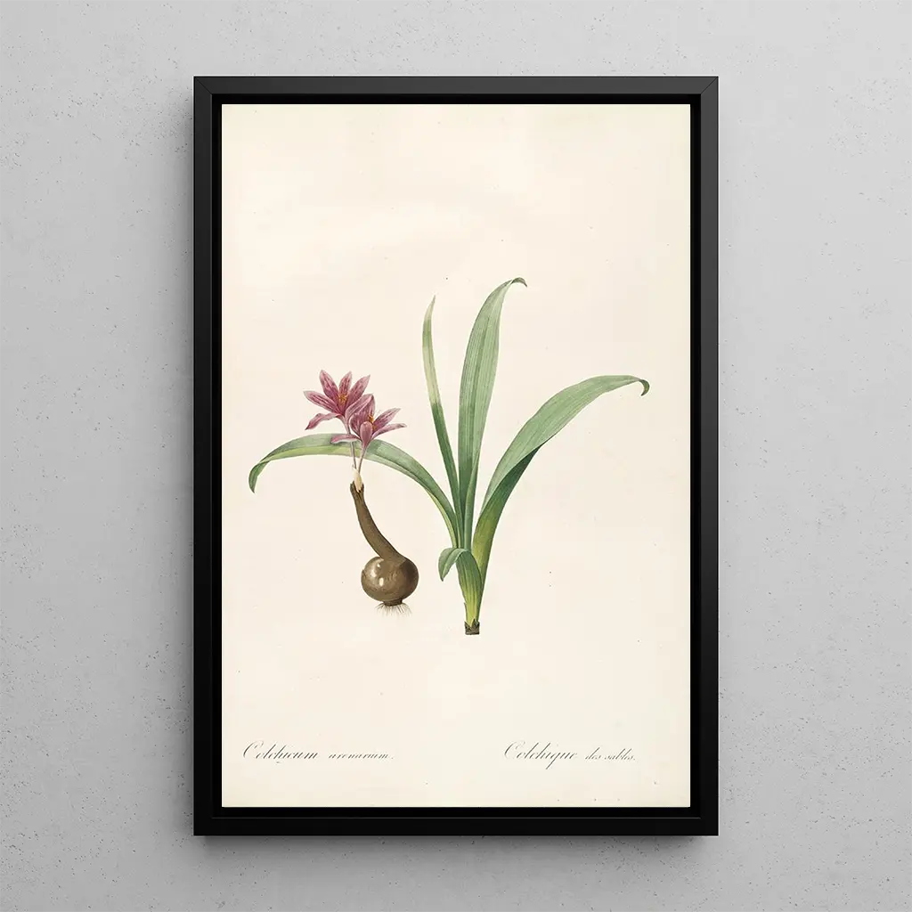 Die reproduction Les Liliacées Pl46 entführt uns in eine zarte Welt, in der jede Blüte zu erzählen scheint. Pierre Joseph Redouté, Meister der künstlerischen Botanik, verwendet eine Palette sanfter und natürlicher Farben und schafft so eine beruhigende und kontemplative Atmosphäre. Die Präzision seiner Linien und die Feinheit seiner Details offenbaren eine außergewöhnliche Aquarelltechnik, bei der das Licht eine entscheidende Rolle spielt, um diesen Blumen Leben einzuhauchen. Dieses Gemälde lädt zum Staunen ein, als könnte man ihren betörenden Duft fast riechen.