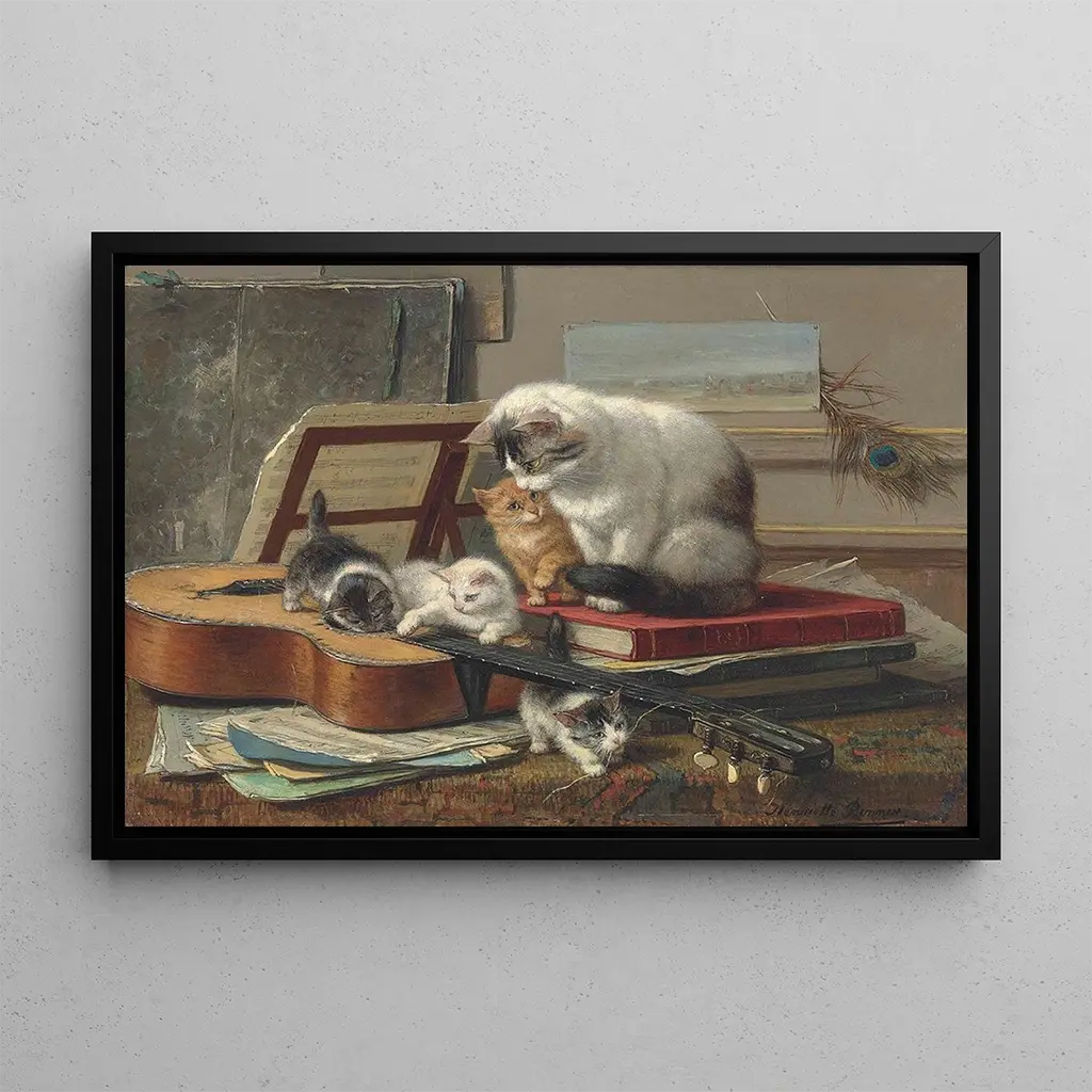 Henriette Ronner-Knip, geboren 1821 in Amsterdam, ist eine niederländische Künstlerin, die für ihre zarten Darstellungen des häuslichen Lebens und der Tiere bekannt ist. Beeinflusst vom künstlerischen Bewegung des 19. Jahrhunderts, hat sie sich einen Platz in einer von männlichen Künstlern dominierten Welt erobert. Ihre Karriere, die sich über mehrere Jahrzehnte erstreckt, ist geprägt von einem einzigartigen Stil, der Feinheit und Realismus vereint, was ihr ermöglichte, eine bedeutende Figur ihrer Zeit zu werden. Die kunstdruck von der Leçon de musique veranschaulicht perfekt ihr Talent, emotionale Momente des Lebens einzufangen, während sie ihre Liebe zur Musik und Harmonie betont.