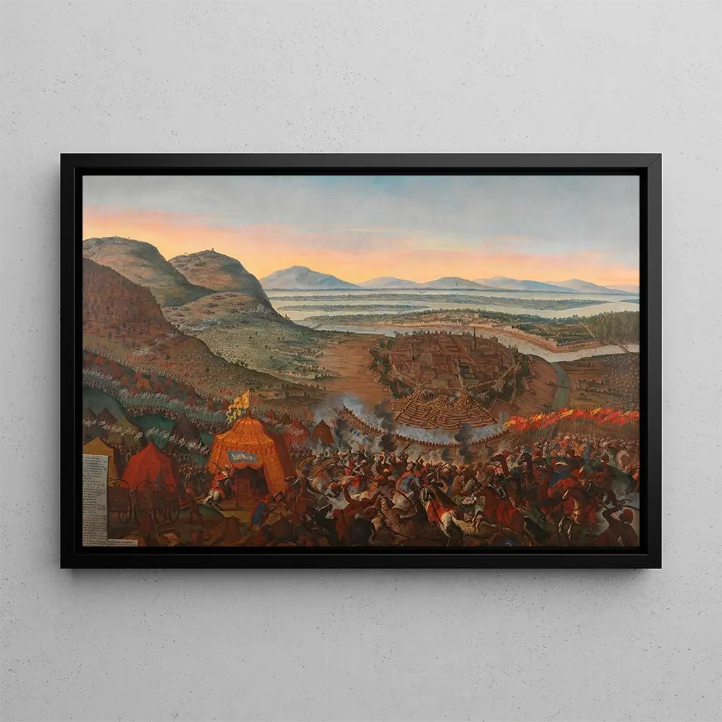 Die Entsatzschlacht von Wien 1683: ein episches Gemälde von Tapferkeit und Entschlossenheit In diesem monumentalen Werk, Die Entsatzschlacht von Wien 1683, schildert der Künstler einen entscheidenden Moment der europäischen Geschichte, in dem der Kampf um das Überleben der Stadt Wien eine heroische Dimension annimmt. Die lebendigen Farben und die beeindruckenden Kontraste zwischen Schatten und Licht schaffen eine dramatische Atmosphäre, die den Blick des Betrachters fesselt. Die dynamische Komposition, mit Figuren in Bewegung und galoppierenden Pferden, evoziert eine spürbare Spannung, während die detaillierten Rüstungen und Flaggen eine visuelle Fülle hinzufügen, die den Betrachter mitten ins Geschehen versetzt. Die Entsatzschlacht Wiens 1683: ein Wendepunkt in der barocken Kunst Die Entsatzschlacht Wiens 1683, der Künstler, ist im barocken Stil gehalten, der sich durch seine Ausdruckskraft und die Fähigkeit auszeichnet, Momente großer Intensität einzufangen. Aktiv in einer Zeit, in der Europa von religiösen und politischen Konflikten geprägt war, nutzt er seine Kunst, um bedeutende historische Ereignisse zu verewigen. Beeinflusst von den Meistern seiner Zeit, gelingt es ihm, Realismus und Dramatik zu verbinden, wodurch seine Werke kraftvolle Zeugnisse der Epoche werden. Dieses Gemälde hebt besonders die Bedeutung von Solidarität und Mut im Angesicht der Widrigkeiten hervor – universelle Themen, die auch heute noch nachklingen. Eine dekorative Anschaffung mit vielfältigen Vorzügen Die reproduction von Die Entsatzschlacht von Wien 1683 ist eine bemerkenswerte Ergänzung für jede Kunstsammlung, sei es im Wohnzimmer, im Büro oder im Schlafzimmer. Die Druckqualität garantiert eine detailgetreue Wiedergabe der Originaldetails, sodass die ganze Kraft des Werks spürbar wird. Als Gemälde bietet es nicht nur einen unbestreitbaren ästhetischen Wert, sondern auch einen faszinierenden Gesprächsstoff für Besucher. Durch die Integration dieses Kunstwerks in Ihre Dekoration bringen Sie ein Stück Geschichte und Kultur in Ihren Raum und bereichern gleichzeitig die Atmosphäre Ihres Wohnbereichs.