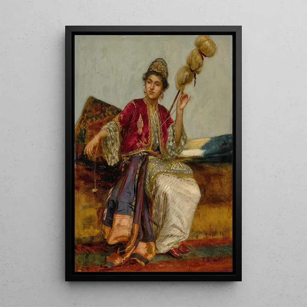 La Fileuse : eine Ode an die Feinheit handwerklicher Arbeit In "La Fileuse" taucht Rudolf Ernst uns ein in eine Welt voller Gelassenheit und Schönheit. Das Leinwandbild zeigt eine konzentrierte Frau, die mit vollem Einsatz spinnt, umgeben von einem sanften Licht, das die Details ihres Gesichts und ihrer Kleidung hervorhebt. Die warmen Farben, dominiert von Erdtönen und Gold, schaffen eine warme und intime Atmosphäre. Die Technik des Künstlers, die Realismus und impressionistische Akzente verbindet, erweckt diese Alltagsszene zum Leben und lädt den Betrachter ein, innezuhalten und die Schönheit einfacher Gesten zu schätzen. Das Werk erinnert an eine Zeit, in der handwerkliche Arbeit geschätzt wurde und jeder Bewegung Bedeutung hatte. Rudolf Ernst : ein Meister des orientalischen Realismus Rudolf Ernst, österreichischer Maler des 19. Jahrhunderts, ist bekannt für seine Werke, die die Magie orientalischer Kulturen einfangen. Beeinflusst von seinen Reisen nach Nordafrika und in den Nahen Osten, hat er die architektonischen Details und Szenen des Alltags mit feinem Gespür wiedergegeben. Sein Stil, der im Realismus verwurzelt ist, zeichnet sich durch eine besondere Aufmerksamkeit für Texturen und Licht aus. Ernst hat es geschafft, sich in der Kunstwelt seiner Zeit zu etablieren und wurde zu einer ikonischen Figur des Orientalismus, einer Bewegung, die viele europäische Künstler fasziniert hat. Seine Werke, wie "La Fileuse", zeugen von seinem Talent und seinem Engagement, die Schönheit ferner Kulturen darzustellen. Eine dekorative Anschaffung mit vielfältigen Vorzügen Eine Reproduktion von "La Fileuse" in Ihrem Zuhause zu wählen, bedeutet, eine Leinwand zu erwerben, die einen Hauch von Eleganz und Wärme bringt. Ob im Wohnzimmer, im Büro oder im Schlafzimmer – dieses Kunstwerk wird durch seine raffinierte Ästhetik und seine poetische Botschaft begeistern. Die Qualität der Reproduktion garantiert eine Treue zu den Details und Farben, sodass Sie die einzigartige Atmosphäre des Originalwerks voll genießen können. Mit diesem Bild in Ihrer Dekoration schaffen Sie einen inspirierenden Raum, in dem Kunst und Alltag harmonisch aufeinandertreffen.
