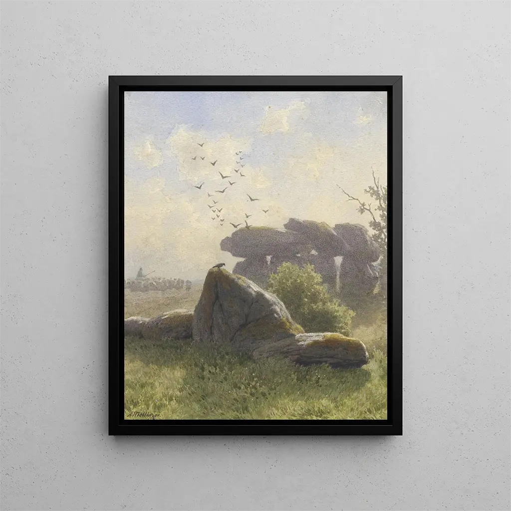 Reproduktion Dolmen - Alexander Mollinger – Einführung fesselnd Im weiten Panorama der zeitgenössischen Kunstgeschichte ragen bestimmte Werke durch ihre Fähigkeit hervor, Zeit und Raum zu transzendieren. Die Reproduktion Dolmen - Alexander Mollinger ist ein perfektes Beispiel dafür. Dieses fesselnde Stück ruft tiefgehende Resonanzen hervor und lädt den Betrachter zu einer introspektiven Reise in die Geheimnisse der Menschheit ein. Mollinger gelingt es mit beeindruckender Meisterschaft, das Wesen der Dolmen einzufangen, jener megalithischen Strukturen, die die Jahrhunderte überdauert haben und Zeugnis von Ritualen und Glaubensvorstellungen vergangener Zivilisationen ablegen. Durch dieses Werk fordert uns der Künstler auf, über unseren Platz in der Welt und die Spuren nachzudenken, die wir hinterlassen. Stil und Einzigartigkeit des Werks Der Stil von Mollinger ist zugleich kühn und subtil, schwankend zwischen Abstraktion und Figuration. In der Reproduktion Dolmen - Alexander Mollinger verschmelzen geometrische Formen mit Nuancen erdiger Farben und schaffen eine Atmosphäre, die sowohl beruhigend als auch faszinierend ist. Die klaren Linien und zarten Konturen spiegeln die Robustheit der Dolmen wider, während sie gleichzeitig eine inhärente Zerbrechlichkeit des menschlichen Daseins andeuten. Jedes Element dieses Werks scheint mit dem anderen zu dialogisieren und eine harmonische Komposition zu bilden, die den Blick fesselt. Die sorgfältig ausgearbeiteten Texturen verleihen dem Werk eine taktile Dimension und laden den Betrachter ein, sich zu nähern und mit dem Blick diese Materialität zu berühren, die fast lebendig wirkt. Auch das Licht spielt eine entscheidende Rolle, enthüllt verborgene Details und geheimnisvolle Schatten und verstärkt das Gefühl einer Verbindung zwischen Vergangenheit und Gegenwart. Der Künstler und sein Einfluss Alexander Mollinger ist ein Künstler, dessen Werdegang von einer ständigen Suche nach Sinn geprägt ist. Inspiriert von Archäologie und Anthropologie, erforscht er die Überreste alter Zivilisationen, um Reflexionen über unsere Zeit zu gewinnen. Sein künstlerischer Ansatz nährt sich aus Reisen, Begegnungen und einer tiefen Neugier auf die Welt um ihn herum. Mollinger beschränkt sich nicht darauf, Formen zu reproduzieren; er versucht, die Geschichten zu verstehen, die sie erzählen. Dieser Ansatz hat ihn dazu geführt, einen einzigartigen Stil zu entwickeln, bei dem jedes Werk eine Brücke zwischen Sichtbarem und Unsichtbarem wird. Der Einfluss seiner Arbeit überschreitet die Grenzen der Kunst