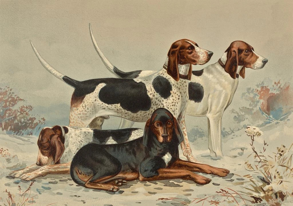 Drei Jagdhunde mit einem Jagdhund: ein lebendiges Gemälde der Natur