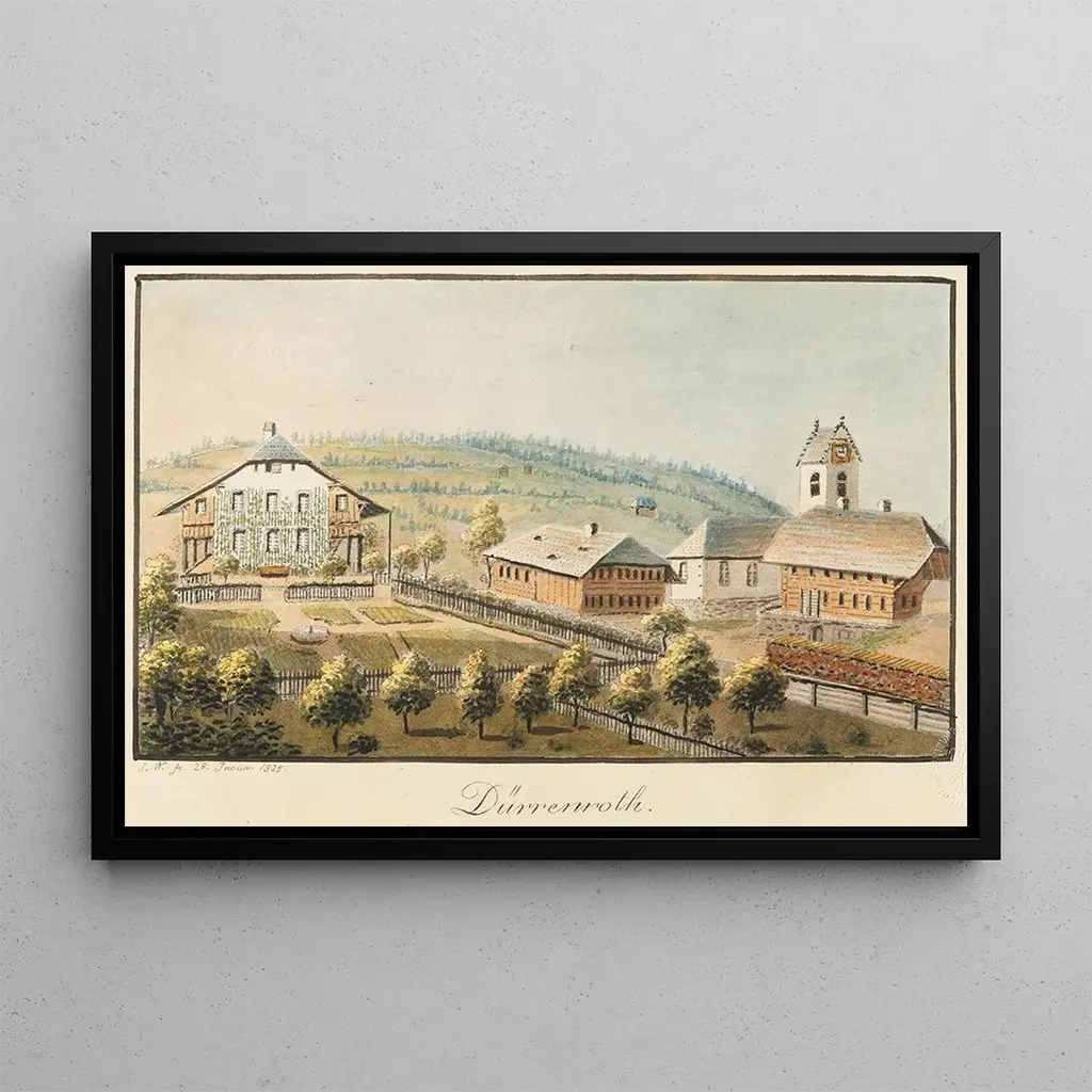 Dürrenroth : ein Landschaftsbild voller Gelassenheit In "Dürrenroth" entführt uns Jakob Samuel Weibel in eine ländliche Landschaft voller Ruhe und natürlicher Schönheit. Die grünen Hügel, goldenen Felder und bewölkten Himmel verschmelzen harmonisch und schaffen eine friedliche Atmosphäre, die zur Flucht einlädt. Die Technik von Weibel, geprägt von zarten Pinselstrichen und sorgfältiger Detailarbeit, erweckt dieses Gemälde zum Leben, bei dem jedes Element zu atmen scheint. Dieses Werk ruft eine Nostalgie für die unberührte Natur hervor und erinnert an die Bedeutung, diese bezaubernden Landschaften zu bewahren. Jakob Samuel Weibel : ein Künstler, der in seiner Zeit verwurzelt ist Jakob Samuel Weibel, aktiv im 19. Jahrhundert, ist ein Schweizer kunstdruckkünstler, dessen Arbeit die Einflüsse des Romantizismus und Realismus widerspiegelt. Obwohl weniger bekannt als einige seiner Zeitgenossen, konnte Weibel die Essenz der Schweizer Landschaften mit einer einzigartigen Sensibilität einfangen. Sein Werk zeugt von einer Epoche, in der der Künstler versuchte, die Natur mit fast fotografischer Treue darzustellen, dabei aber eine emotionale Dimension einfließen ließ. Seine Landschaften, wie "Dürrenroth", sind wertvolle Zeugnisse der Schönheit alpiner Landschaften und der Bedeutung der Natur in der Kunst. Eine dekorative Anschaffung mit vielfältigen Vorzügen Der kunstdruck von "Dürrenroth" ist eine dekorative Wahl, die Ihr Zuhause verschönern wird, sei es im Wohnzimmer, Büro oder Schlafzimmer. Seine beruhigende Darstellung der Natur bringt eine Atmosphäre der Ruhe und Gelassenheit, ideal um einen Entspannungsraum zu schaffen. Die Qualität dieses kunstdrucks gewährleistet eine bemerkenswerte Treue zum Originalwerk, sodass die Schönheit von Weibel voll zur Geltung kommt. Durch die Integration dieses Leinwandbildes in Ihre Dekoration fügen Sie eine künstlerische Note hinzu, die zur Kontemplation und Flucht einlädt.
