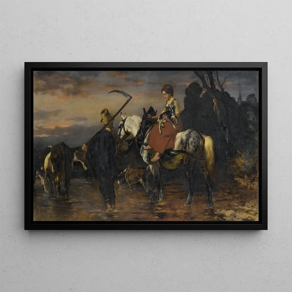 Die Leinwand "Traversée de la rivière" von Wilhelm von Diez zeigt eine idyllische Szene, in der die Harmonie zwischen Mensch und Natur sich zart offenbart. Die sanften Farben und die Nuancen von Grün und Blau schaffen eine beruhigende Atmosphäre, während die Öltechnik auf Leinwand es ermöglicht, das Licht auf fast magische Weise einzufangen. Die Figuren, in voller Aktion, scheinen sich auf ein Abenteuer einzulassen, was die Idee einer Gemeinschaft mit der umgebenden Landschaft verstärkt. Dieses Kunstwerk lädt den Betrachter ein, zu entfliehen und die Schönheit der natürlichen Landschaften zu bewundern.