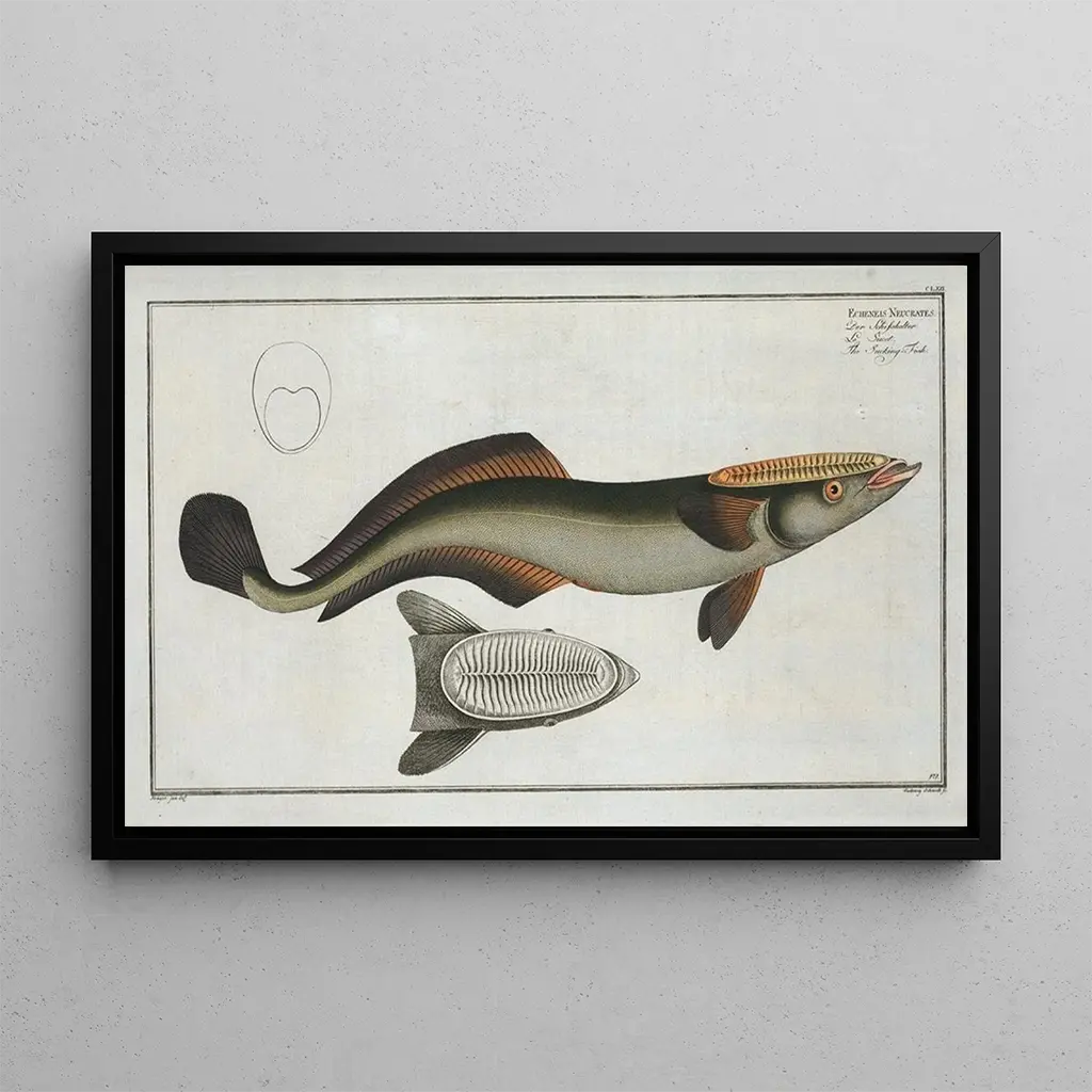 Echeneis Neucrates Le Poisson-suceur : ein faszinierender Wasserballett Die reproduction von Echeneis Neucrates, auch bekannt als der Poisson-suceur, entführt uns in eine fesselnde Meereswelt. Dieses Gemälde, mit seinen Nuancen von Blau und Grün, ruft die Tiefe der Ozeane hervor. Die Technik des Künstlers, die Präzision und Feinfühligkeit verbindet, hebt die Details dieses ungewöhnlichen Fisches hervor, dessen längliche Form und Saugnäpfe neugierig machen. Die Atmosphäre, die dieses Werk ausstrahlt, ist zugleich beruhigend und geheimnisvoll, lädt den Betrachter ein, die verborgenen Wunder unter der Wasseroberfläche zu erkunden. Marcus Elieser Bloch: Pionier der ichthyologischen Illustration Marcus Elieser Bloch, Naturforscher und Künstler des 18. Jahrhunderts, prägte seine Zeit durch seine Beiträge zur Wissenschaft und Kunst. Ursprünglich aus Deutschland stammend, widmete er sein Leben der Fischforschung und schuf präzise, künstlerische Illustrationen, die als Referenz für Wissenschaftler seiner Zeit dienten. Sein Werk, insbesondere die "Naturgeschichte der ausländischen Fische", zeugt von seinem Engagement, wissenschaftliche Strenge und Ästhetik zu verbinden. Bloch ebnete so den Weg für einen neuen Ansatz in der naturwissenschaftlichen Illustration und beeinflusste zahlreiche Künstler und Wissenschaftler. Eine dekorative Anschaffung mit vielfältigen Vorzügen Diese Echeneis Neucrates-Kunstdruck ist ein ideales Dekorationsstück für verschiedene Räume, sei es im Wohnzimmer, Büro oder Schlafzimmer. Die Druckqualität und die Treue zum Originalwerk garantieren einen unverkennbaren ästhetischen Reiz. Durch die Integration dieses Gemäldes in Ihre Dekoration verleihen Sie Ihrem Raum eine Note von Eleganz und Neugier, während Sie die Schönheit der Meereswelt feiern. Das Werk zieht den Blick auf sich und regt Gespräche an, macht Ihr Zuhause zu einem Ort der Flucht und Entdeckung.