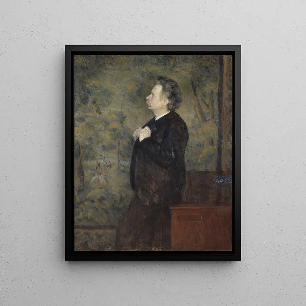 Reproduktion Edvard Grieg Komponist - Erik Werenskiold – Fesselnde Einführung Das Werk "Edvard Grieg Komponist" von Erik Werenskiold ist ein Meisterwerk, das nicht nur die Persönlichkeit des norwegischen Komponisten, sondern auch die Essenz der romantischen Musik am Ende des 19. Jahrhunderts widerspiegelt. Diese Darstellung, geprägt von tiefer Intimität, entführt uns in die Welt von Grieg, wo Melodie und Emotion aufeinandertreffen. Durch diesen Kunstdruck wird der Betrachter eingeladen, die Nuancen einer Epoche zu erkunden, in der Kunst und Musik verschmolzen, um zeitlose Meisterwerke zu schaffen. Das Werk von Werenskiold, durch seine visuelle Intensität und narrative Reichtum, offenbart einen in der Zeit aufgehobenen Moment, in dem jedes Detail von einer leidenschaftlichen Hingabe zur künstlerischen Schöpfung spricht. Stil und Einzigartigkeit des Werks Der Stil von Erik Werenskiold zeichnet sich durch seine Fähigkeit aus, die Essenz der Figuren einzufangen, die er darstellt. In "Edvard Grieg Komponist" nutzt der Künstler Licht- und Schattenspiele, um die Züge des Gesichts des Komponisten zu betonen, während er symbolische Elemente integriert, die sein musikalisches Werk widerspiegeln. Die gewählte Farbpalette, subtil und harmonisch, spiegelt die melancholische und träumerische Atmosphäre wider, die man in den Kompositionen von Grieg findet. Jeder Pinselstrich scheint eine Melodie zu murmeln und schafft einen Dialog zwischen Bild und Musik. Dieses Werk beschränkt sich nicht darauf, einen Mann darzustellen; es verkörpert den Geist der musikalischen Schöpfung selbst, vereint das Visuelle und das Auditive in perfekter Harmonie. Der Künstler und sein Einfluss Erik Werenskiold, eine bedeutende Figur der norwegischen Kunst, prägte seine Zeit mit einem Stil, der Realismus und Romantik vereint. Ausgebildet an der Königlichen Akademie der Schönen Künste in Oslo, wurde er von den großen Meistern seiner Zeit beeinflusst, entwickelte jedoch eine eigene Herangehensweise. Seine Begegnung mit Künstlern wie Grieg hat zweifellos seine Inspiration genährt und ihm ermöglicht, Themen im Zusammenhang mit der norwegischen Kultur zu erforschen. Werenskiold spielte auch eine entscheidende Rolle bei der Förderung der nationalen Identität durch seine Kunst, indem er die Landschaften und Persönlichkeiten einfing, die die Geschichte Norwegens prägten.