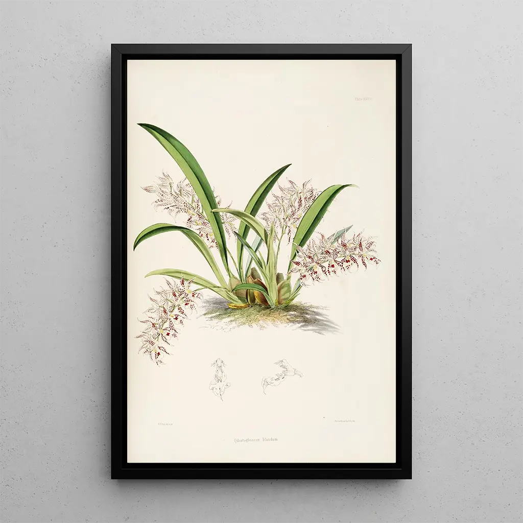 Eine Monographie von Odontoglossum Pl27: eine Feier der floralen Schönheit Das Werk "Odontoglossum Pl27" von James Bateman ist eine wahre Hommage an die Pracht der Orchideen. Diese kunstdruck zeigt lebendige Farben, die von leuchtendem Gelb bis zu zarten Lilatönen reichen und einen beeindruckenden Kontrast schaffen. Die Lithographietechnik, die verwendet wurde, um jedes Detail einzufangen, ermöglicht es, die Textur der Blütenblätter und die Zartheit jeder Blume zu spüren. Die Atmosphäre, die von diesem Gemälde ausgeht, ist sowohl beruhigend als auch inspirierend und lädt den Betrachter ein, in eine reiche und fesselnde Blumenwelt einzutauchen. James Bateman: ein Pionier der botanischen Illustration James Bateman, aktiv im 19. Jahrhundert, ist bekannt für seine bedeutende Rolle im Bereich der botanischen Illustration. Beeinflusst von den botanischen Entdeckungen seiner Zeit, verstand er es, Wissenschaft und Kunst in seinen Werken zu vereinen. Bateman widmete seine Karriere der Darstellung von Orchideen, einem Thema, das ihn tief begeisterte. Seine Arbeit trug dazu bei, diese exotischen Blumen populär zu machen, und bot gleichzeitig einen wertvollen Einblick in die botanische Vielfalt seiner Zeit. "Odontoglossum Pl27" reiht sich in diese Linie ein und zeugt von der Bedeutung der Kunst in der wissenschaftlichen Dokumentation. Eine dekorative Anschaffung mit vielfältigen Vorzügen Dieser kunstdruck "Odontoglossum Pl27" ist ein ideales Dekorationsstück, um verschiedene Räume wie Wohnzimmer, Büro oder sogar Schlafzimmer zu verschönern. Die Druckqualität garantiert eine bemerkenswerte Treue zu den Details des Originalwerks, sodass man seine Schönheit voll genießen kann. Die ästhetische Anziehungskraft dieses Gemäldes liegt in seiner Fähigkeit, einen Hauch von Natur und Eleganz in Ihr Zuhause zu bringen. Durch die Integration dieses Bildes in Ihre Dekoration schaffen Sie eine ruhige und raffinierte Atmosphäre und feiern gleichzeitig die botanische Kunst.