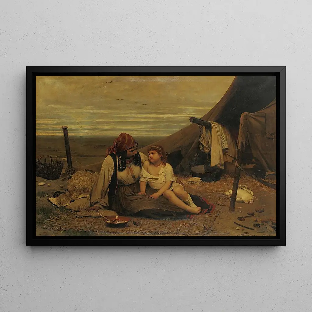 Antoni Kozakiewicz, polnischer Maler des 19. Jahrhunderts, wird oft mit der romantischen Bewegung in Verbindung gebracht, die Emotionen und Individualität betont. Beeinflusst von den künstlerischen Traditionen seiner Zeit, spezialisierte er sich auf die Darstellung von Alltagsszenen, bei denen oft marginalisierte Themen im Vordergrund stehen. Seine Karriere, obwohl weniger bekannt als die seiner Zeitgenossen, zeugt von tiefem Respekt für die Kulturen, die er porträtiert. "Une famille gitane" veranschaulicht perfekt sein Interesse an alternativen Lebensweisen und seinen Wunsch, die menschliche Seele durch Kunst einzufangen, was ihn zu einem bedeutenden Akteur der zeitgenössischen Kunstszene macht.