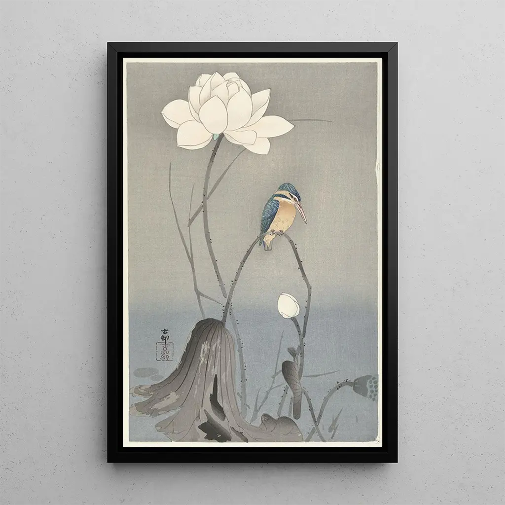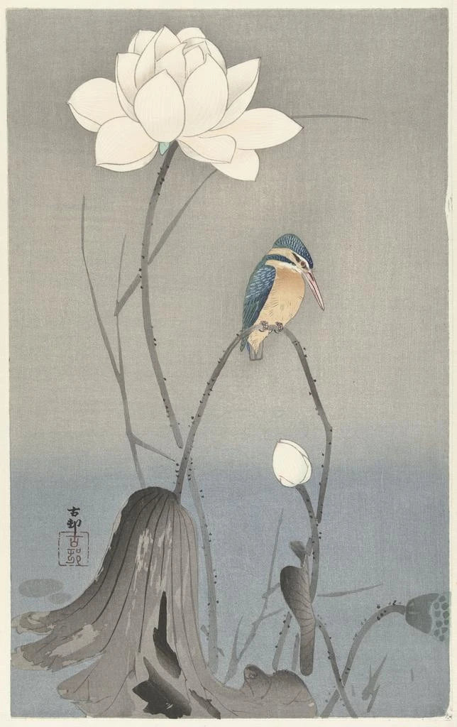 Kunstdruck | Eisvogel mit Lotusblume - Ohara Koson