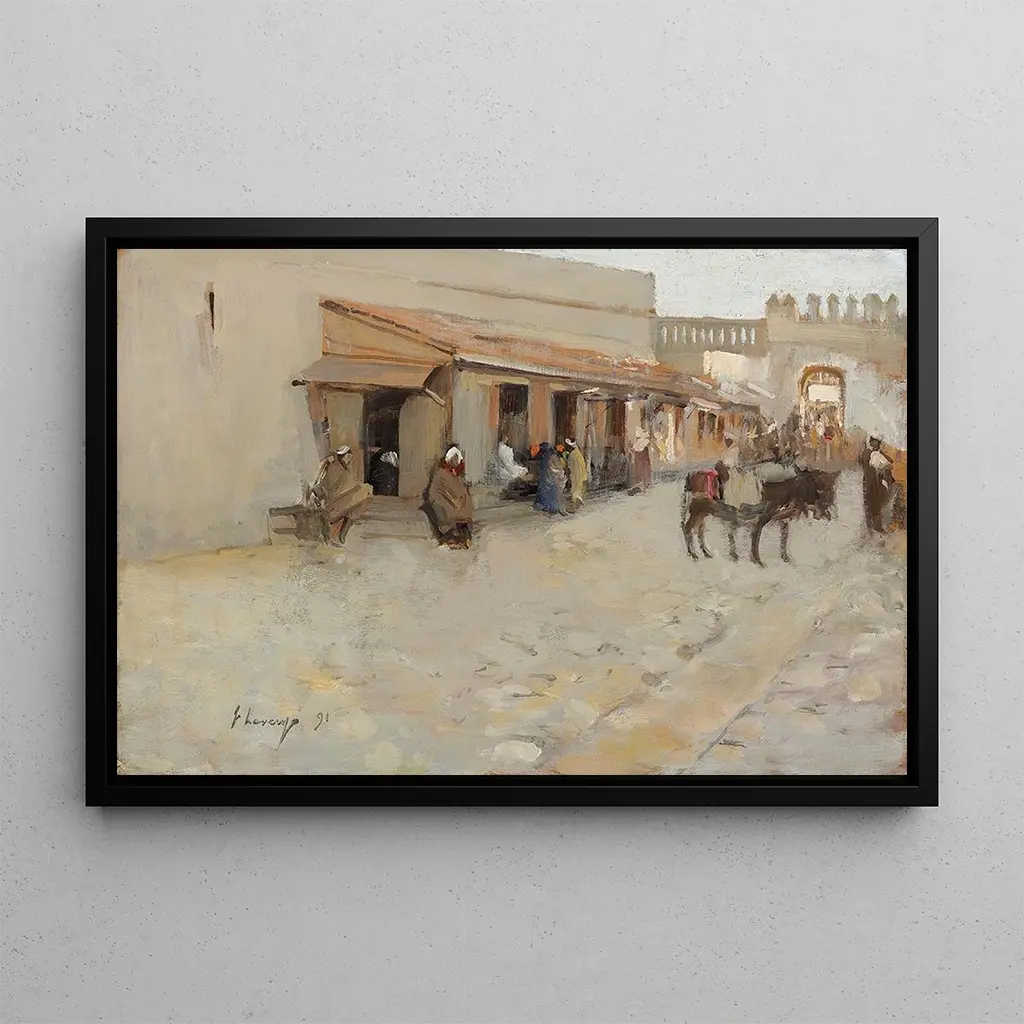 El Asha : ein Tanz aus Licht und Schatten In diesem fesselnden Werk taucht uns Sir John Lavery in eine Welt ein, in der Licht eine zentrale Rolle spielt. Das Gemälde, reich an Nuancen, zeigt eine lebendige Szene, in der sich die Farben harmonisch verweben. Das Spiel von Schatten und Licht schafft eine fast ätherische Atmosphäre und lädt den Betrachter ein, in den Moment einzutauchen. Lavery, Meister der impressionistischen Malerei, gelingt es, die Essenz seines Themas einzufangen und jedes Detail lebendig wirken zu lassen. Die Komposition, zugleich dynamisch und ausgewogen, vermittelt ein Gefühl von Bewegung, als ob die Figuren unter unseren Augen zum Leben erwachen. Sir John Lavery : ein Pionier der impressionistischen Bewegung Sir John Lavery, schottischer Künstler des frühen 20. Jahrhunderts, ist bekannt für seine bedeutende Rolle bei der Entwicklung der impressionistischen Malerei in Großbritannien. Beeinflusst von den großen europäischen Meistern, verstand er es, Elemente von Licht und Farbe in seine Werke zu integrieren, wobei er eine persönliche Note bewahrte. Lavery war auch ein renommierter Porträtmaler, der den Geist seiner Zeitgenossen mit bemerkenswerter Feinfühligkeit einfing. Seine Arbeiten werden oft mit der Belle Époque assoziiert, einer Zeit des Wohlstands und künstlerischer Innovation, in der er sich durch seine Sensibilität und seinen einzigartigen Ansatz von Licht hervortat. Eine dekorative Anschaffung mit vielfältigen Vorzügen Die kunstdruck-Reproduktion des Gemäldes El Asha ist ein dekoratives Stück, das Ihr Zuhause bereichern wird, sei es im Wohnzimmer, Büro oder Schlafzimmer. Die Druckqualität, die den originalen Nuancen treu bleibt, garantiert eine beeindruckende ästhetische Wirkung. Dieses Bild, mit seinen lebendigen Farben und seiner faszinierenden Atmosphäre, zieht den Blick auf sich und regt Gespräche an. Durch die Integration dieses Leinwandbildes in Ihre Dekoration verleihen Sie Ihrem Raum Eleganz und Raffinesse und feiern gleichzeitig das Talent eines bedeutenden Künstlers. Es ist ein Werk, das die Zeit überdauert und zukünftige Generationen weiterhin begeistern wird.