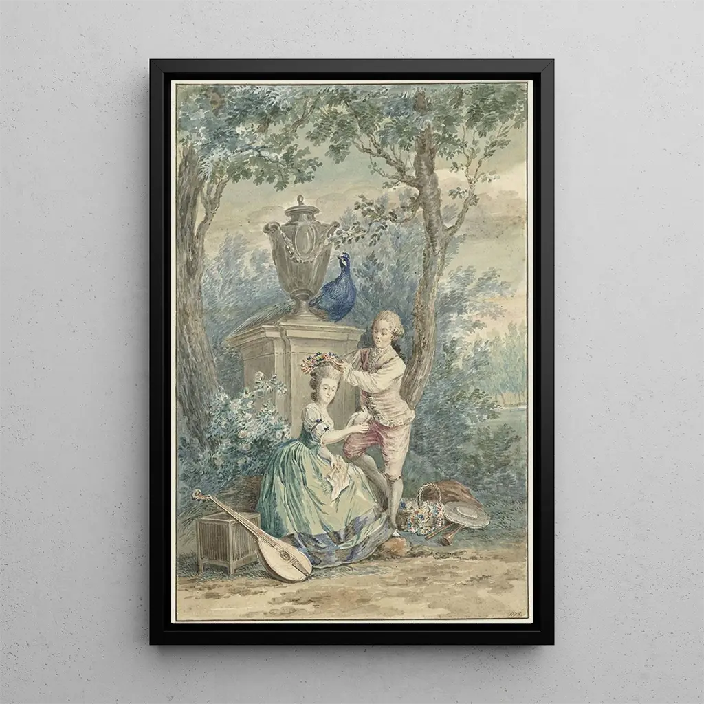 Elegantes Paar in einem Park: eine Szene voller Anmut In dieser kunstdruckversion des Gemäldes "Elegantes Paar in einem Park" fängt Nicolaes Muys einen Moment der Gelassenheit und Eleganz ein. Die Figuren, gekleidet in feine Kostüme, stehen in einem üppigen Park, umgeben von Grün und leuchtenden Blumen. Die pastellfarbenen, sanften und leuchtenden Töne schaffen eine romantische Atmosphäre, während Muys' Technik mit zarten Pinselstrichen jedem Detail Leben einhaucht. Das Werk lädt zu einer beruhigenden Betrachtung ein, bei der man fast das Flüstern des Windes in den Bäumen und den Gesang der Vögel hören kann. Nicolaes Muys: ein Meister des Porträts im 17. Jahrhundert Nicolaes Muys, aktiv im 17. Jahrhundert, ist bekannt für seine feinen Porträts und Szenen des Genres. Beeinflusst von den Meistern seiner Zeit, verstand er es, Realismus und Eleganz in seinen Arbeiten zu vereinen. Muys stellte häufig das bürgerliche Leben dar und betonte Mode und Sitten seiner Epoche. Sein barocker Stil, gekennzeichnet durch eine sorgfältige Detailarbeit und eine subtile Lichtführung, zeugt von der Bedeutung der niederländischen Malerei in dieser Zeit. Seine Werke, obwohl weniger bekannt als die seiner Zeitgenossen, offenbaren eine einzigartige künstlerische Sensibilität. Eine dekorative Anschaffung mit vielfältigen Vorzügen Der kunstdruck von "Elegantes Paar in einem Park" ist ein ideales Dekorationsstück, um Ihr Interieur aufzuwerten. Ob im Wohnzimmer, Büro oder Schlafzimmer, dieses Bild verleiht einen Hauch von Raffinesse und Charme. Die Druckqualität garantiert eine Farbtreue und Detailgenauigkeit des Originalwerks und bietet gleichzeitig eine unbestreitbare ästhetische Anziehungskraft. Mit dieser Leinwand entscheiden Sie sich für eine Dekoration, die die Eleganz der Vergangenheit evoziert und sich harmonisch in ein modernes Ambiente einfügt.