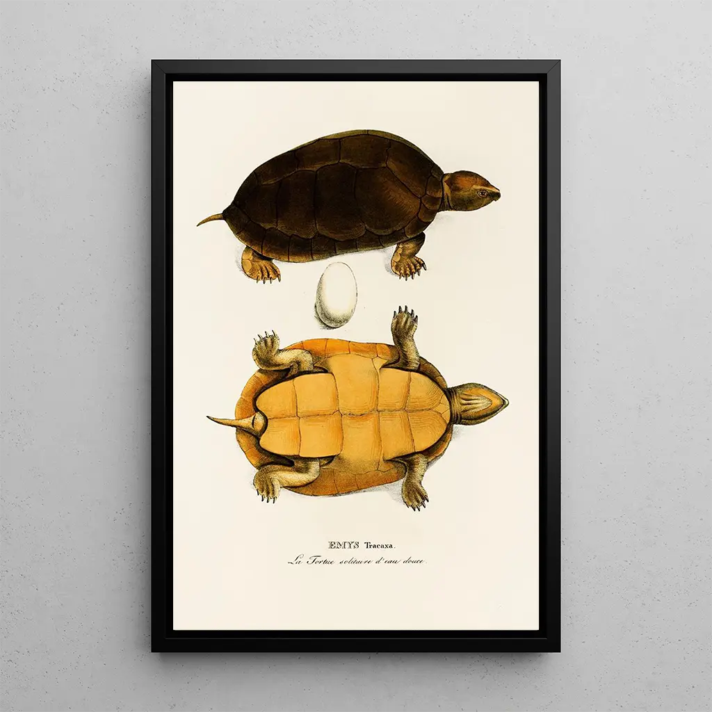 Der Kunstdruck von "Emys Tracaxa" ist eine kluge dekorative Wahl, um Ihr Interieur zu verschönern, sei es im Wohnzimmer, im Büro oder im Schlafzimmer. Seine Druckqualität garantiert eine bemerkenswerte Treue zu den Details des Originalwerks und bringt einen Hauch von Natur und Ruhe in Ihren Raum. Dieses Bild, mit seinem unbestreitbaren ästhetischen Reiz, wird die Aufmerksamkeit Ihrer Gäste auf sich ziehen und bereichernde Gespräche anregen. Mit der Wahl dieses Leinwandbildes treffen Sie die Entscheidung für ein Stück, das Schönheit, Wissenschaft und Umweltbewusstsein vereint.