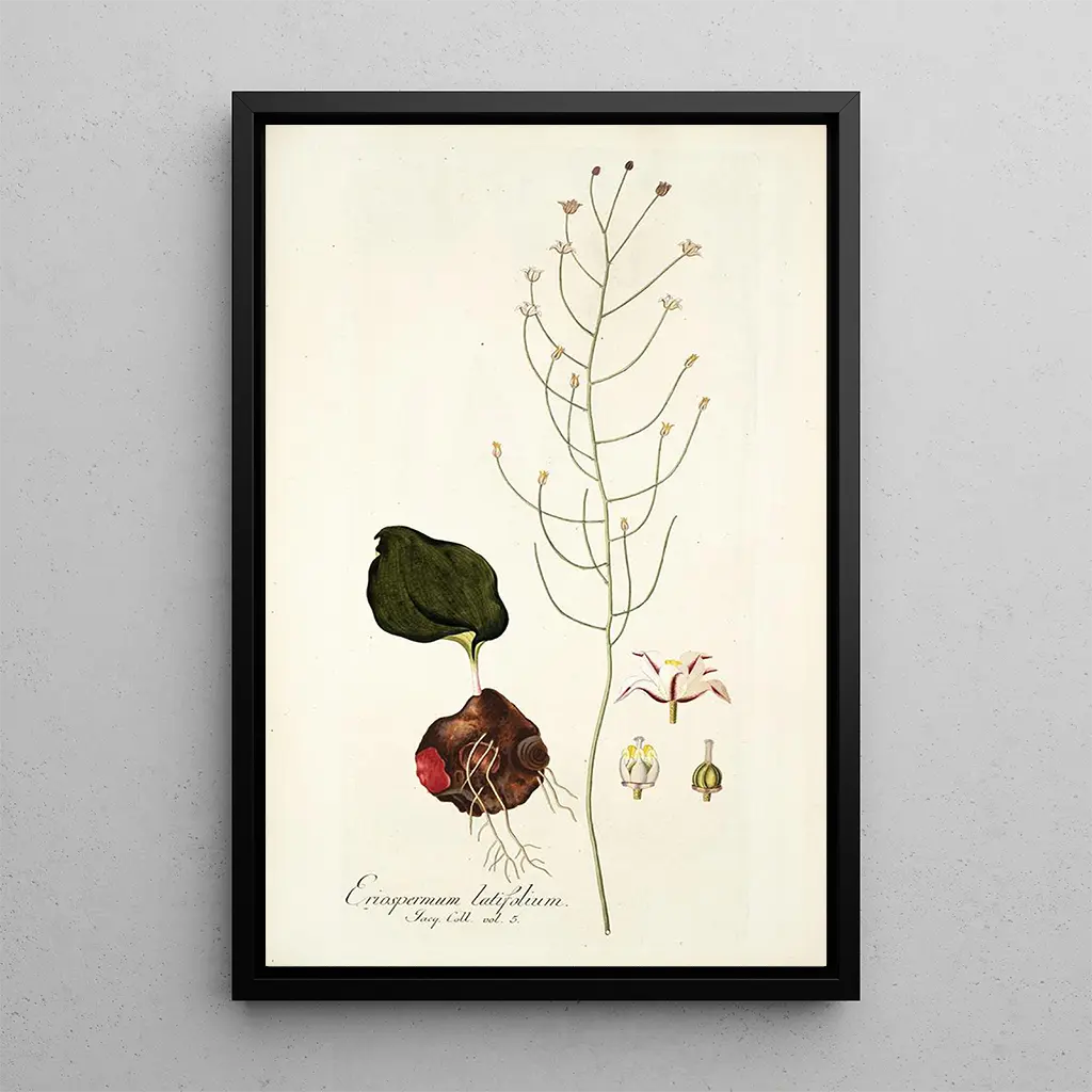 Eriospermum latifolium : ein botanisches Wunder zum Entdecken Das Werk "Eriospermum latifolium" von Nikolaus Joseph Freiherr von Jacquin ist eine faszinierende Darstellung der Botanik des 18. Jahrhunderts. Dieses Gemälde, reich an Details, hebt die einzigartige Schönheit dieser Pflanze hervor, mit ihren breiten Blättern und zarten Stängeln. Die lebendigen Farben, die von tiefem Grün bis zu strahlendem Gelb reichen, schaffen eine lebendige und dynamische Atmosphäre. Die Aquarelltechnik, meisterhaft von Jacquin beherrscht, ermöglicht es, die Texturen und Nuancen der Pflanze mit bemerkenswerter Präzision wiederzugeben. Jedes Element ist sorgfältig beobachtet und lädt den Betrachter zu einer aufmerksamen Betrachtung der Natur ein. Nikolaus Joseph Freiherr von Jacquin: ein Pionier der künstlerischen Botanik Nikolaus Joseph Freiherr von Jacquin, österreichischer Botaniker und Künstler, spielte eine entscheidende Rolle bei der Entwicklung der botanischen Illustration im 18. Jahrhundert. Ausgebildet an der Universität Wien, wurde er durch die Entdeckungsreisen und wissenschaftlichen Erkenntnisse seiner Zeit beeinflusst. Seine Werke, darunter "Eriospermum latifolium", zeugen von seinem Engagement, die Vielfalt der Pflanzen zu dokumentieren und der Öffentlichkeit zugänglich zu machen. Jacquin war auch ein aktives Mitglied der wissenschaftlichen Gemeinschaft und trug zur Klassifikation der Pflanzenarten sowie zur Bereicherung europäischer botanischer Gärten bei. Sein Erbe lebt durch seine Illustrationen weiter, die wissenschaftliche Strenge mit künstlerischem Ausdruck verbinden. Eine dekorative Anschaffung mit vielfältigen Vorzügen Der kunstdruck von "Eriospermum latifolium" ist ein dekoratives Stück, das eine natürliche Note in Ihr Zuhause bringt. Ob im Wohnzimmer, im Büro oder im Schlafzimmer, dieses Bild zieht den Blick auf sich und weckt Interesse. Die Druckqualität garantiert eine Farbtreue und Detailgenauigkeit des Originalwerks, sodass Sie die Schönheit dieser Pflanze genießen können, während Sie gleichzeitig eine elegante Note in Ihre Dekoration einfügen. Mit seiner ästhetischen Anziehungskraft wird diese Leinwand zu einem echten Blickfang und lädt dazu ein, über die Vielfalt der Biodiversität und die Kunst der Botanik nachzudenken.