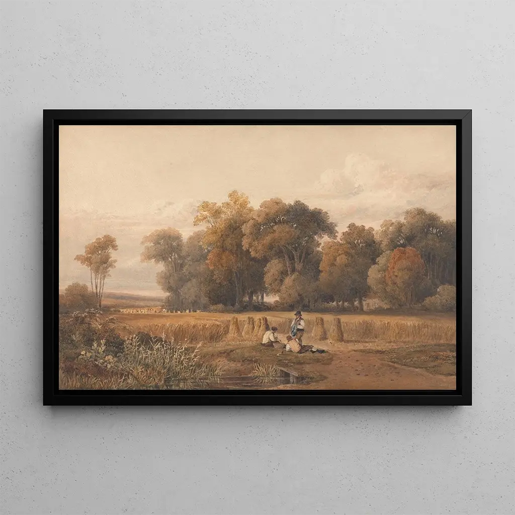 In "Reproduktion, der Mittagspause bei der Ernte" fängt Charles Vincent Barber einen Moment der Ruhe mitten in einem Arbeitstag ein. Die Komposition hebt Landwirte hervor, die sich unter einem hellen Himmel ausruhen, wobei die Grüntöne der Felder im Kontrast zu den warmen Erdtönen stehen. Die detaillierten Gesichtszüge und Kleidungsstücke der Figuren sowie der geschickte Einsatz von Licht schaffen eine friedliche und kontemplative Atmosphäre. Dieses Gemälde evoziert nicht nur die Anstrengung der Arbeiter, sondern auch die Schönheit ländlicher Landschaften und lädt den Betrachter ein, in diese Szene einfachen und authentischen Lebens einzutauchen.