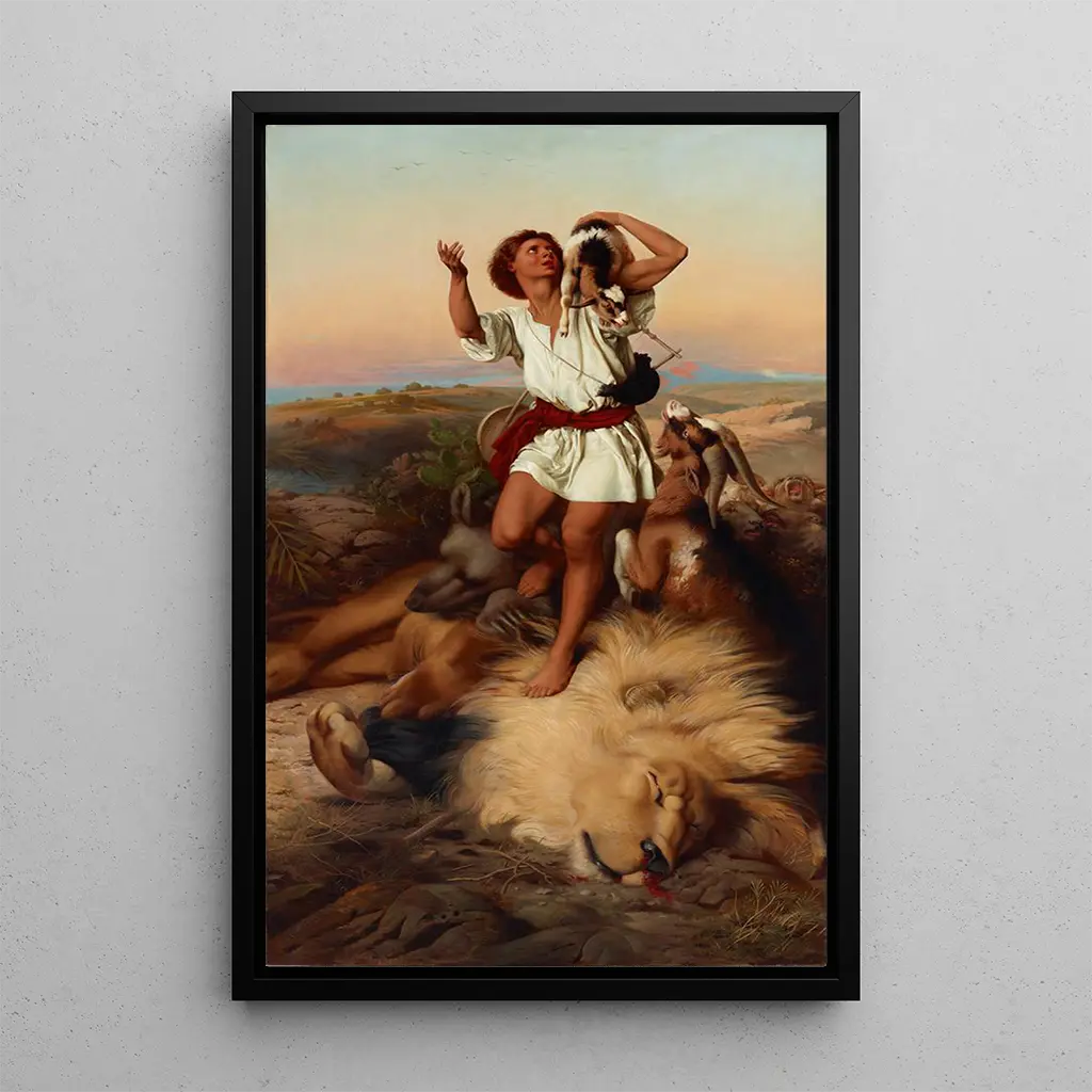 Die kunstdruck-Reproduktion von "Première victoire de David" ist eine faszinierende Ergänzung für jede Kunstsammlung, sei es im Wohnzimmer, im Büro oder in einer Ausstellungshalle. Die Druckqualität garantiert eine bemerkenswerte Treue zu den Details und Farben des Originalwerks und bietet somit ein bereicherndes visuelles Erlebnis. Durch die Integration dieses Leinwandbildes in Ihre Dekoration bringen Sie ein Stück Geschichte und Kultur in Ihr Zuhause und regen gleichzeitig Gespräche über diesen bedeutenden Moment an. Dieses Bild bereichert durch seine visuelle Wirkung und seine starke Botschaft die Atmosphäre jedes Wohnraums und verbindet Ästhetik mit Reflexion.