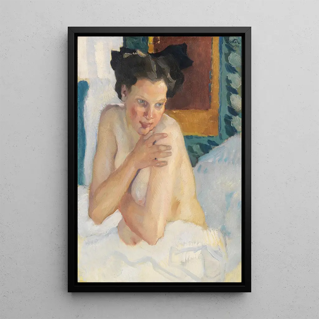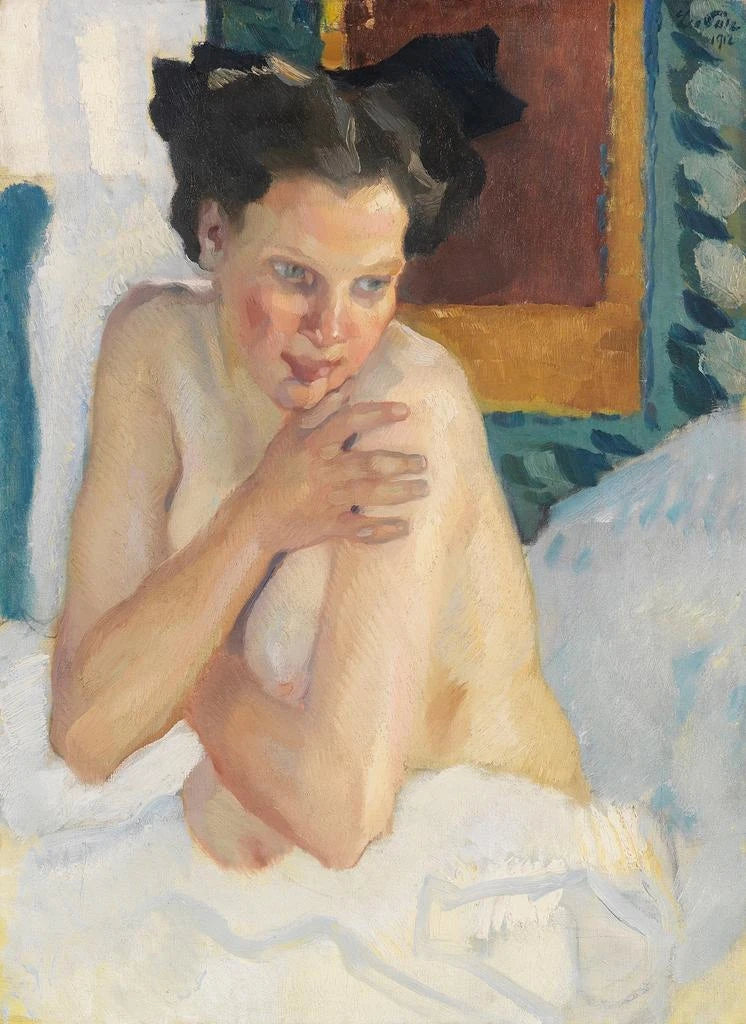 Kunstdruck | Erwachen halbnackt sitzend - Leo Putz