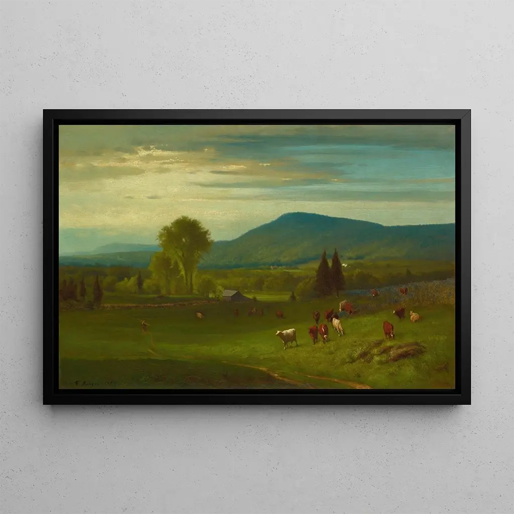 Kunstdruck Sommer in den Catskills: eine idyllische Flucht Die Kunstdruck der Arbeit Sommer in den Catskills ruft eine idyllische Landschaft hervor, in der die Natur unter einem azurblauen Himmel erblüht. Die lebendigen Farben der Bäume und Felder, verbunden mit einem sanften Licht, schaffen eine ruhige und einladende Atmosphäre. George Inness, Meister der amerikanischen Landschaftsmalerei, verwendet Ölfarbentechniken, die die Szene lebendig und immersiv wirken lassen. Jeder Pinselstrich scheint den Atem des Windes und den Gesang der Vögel einzufangen und lädt den Betrachter ein, in diese bucolische Flucht einzutauchen. George Inness: der amerikanische Romantizismus in voller Blüte George Inness, eine ikonische Figur der amerikanischen impressionistischen Bewegung, verstand es, europäische Einflüsse mit der amerikanischen Landschaft zu verbinden. Im 19. Jahrhundert aktiv, wurde er von Künstlern wie Claude Monet und John Constable inspiriert, während er einen einzigartigen Stil entwickelte, der Emotionen und Atmosphäre in den Vordergrund stellt. Inness erforschte häufig spirituelle Themen in seinen Landschaften und suchte, eine tiefe Verbindung zwischen Mensch und Natur zu vermitteln. Sein Werk markierte eine Zeit, in der sich die amerikanische Kunst zu definieren begann, und er bleibt eine unverzichtbare Referenz für Kunstliebhaber. Eine dekorative Anschaffung mit vielfältigen Vorzügen Dieser Kunstdruck des Gemäldes Sommer in den Catskills ist perfekt, um jeden Raum zu verschönern, sei es ein Wohnzimmer, Schlafzimmer oder Büro. Seine Druckqualität und die Liebe zum Detail machen ihn zu einem Kunstwerk, das ins Auge fällt und die Atmosphäre Ihres Interieurs bereichert. Durch die Integration dieses Werks in Ihre Dekoration bringen Sie eine Note von Ruhe und natürlicher Schönheit ein und feiern gleichzeitig das künstlerische Erbe von George Inness. Dieses Gemälde, mit seinem zeitlosen Charme, wird alle begeistern, die es betrachten.