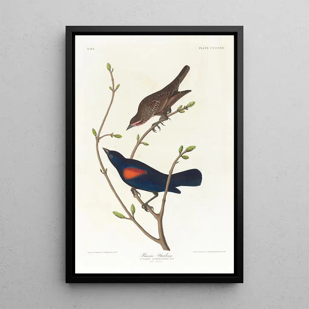 Étourneau des prairies : eine Ode an die Wildnis Die reproduction des Étourneau des prairies entführt uns ins Herz der weiten amerikanischen Prärien, wo dieser bunte Vogel in seinem natürlichen Lebensraum gedeiht. John James Audubon, mit seinem außergewöhnlichen Talent zur Beobachtung, gelingt es, die Lebendigkeit dieses Vogels durch leuchtende Farben und eine dynamische Komposition zu verewigen. Das Werk strahlt eine spürbare Energie aus, fängt die Bewegung des Étourneau im Flug ein, während der Hintergrund die wilde Schönheit der amerikanischen Landschaften widerspiegelt. Dieses Gemälde ist viel mehr als eine einfache Darstellung; es ist eine Feier der Biodiversität und der Pracht der Natur. John James Audubon: ein Künstler im Dienst der Natur John James Audubon ist eine ikonische Figur der ornithologischen Kunst des 19. Jahrhunderts. Geboren 1785, widmete er sein Leben der Studie und Darstellung der Vögel Amerikas und wurde so zu einem Pionier auf diesem Gebiet. Seine Werke, beeinflusst vom Romantizismus, versuchen, die Schönheit und Vielfalt der Vogelwelt einzufangen. Der Étourneau des prairies ist eine seiner beliebtesten Illustrationen und zeugt von seinem Engagement, Kunst und Wissenschaft zu verbinden. Durch seine Arbeit hat Audubon nicht nur die Welt der Kunst bereichert, sondern auch das Bewusstsein für den Naturschutz geschärft. Eine dekorative Anschaffung mit vielfältigen Vorteilen Die reproduction des Étourneau des prairies ist eine perfekte Ergänzung für Ihre Inneneinrichtung, sei es im Wohnzimmer, im Büro oder im Schlafzimmer. Seine lebendige und dynamische Darstellung bringt Leben und Farbe in Ihren Raum. Die Druckqualität sorgt für eine außergewöhnliche Treue zu den Details des Originalwerks, sodass jede Nuance und jeder Strich geschätzt werden kann. Mit diesem Bild fügen Sie Ihrer Sammlung nicht nur ein Kunstwerk hinzu, sondern laden auch ein Symbol der wilden Natur in Ihren Alltag ein und schaffen so eine inspirierende und warme Atmosphäre.