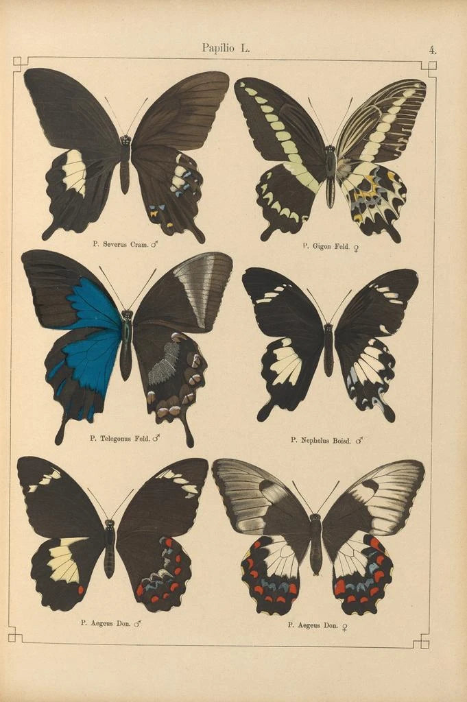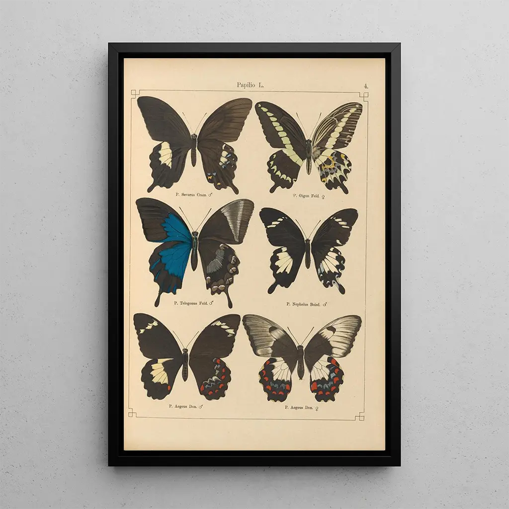 Die "Papillons exotiques Pl004" von Otto Staudinger entführen uns in eine lebendige Welt, in der sich die Natur mit Bravour offenbart. Die zarte Komposition dieser Insekten mit ausgebreiteten Flügeln erinnert an eine luftige Leichtigkeit, während die leuchtenden Farben, die von tiefem Blau bis zu hellem Gelb reichen, das Auge und die Fantasie fesseln. Staudinger gelingt es mit seiner akribischen Technik, seinen Motiven eine fast greifbare Lebendigkeit einzuhauchen, wodurch eine Traum- und Staunenatmosphäre entsteht. Jedes Detail, von den Adern der Flügel bis zu den komplexen Mustern, zeugt von einer tiefen Liebe zur Biodiversität und einer aufmerksamen Beobachtung der Natur.