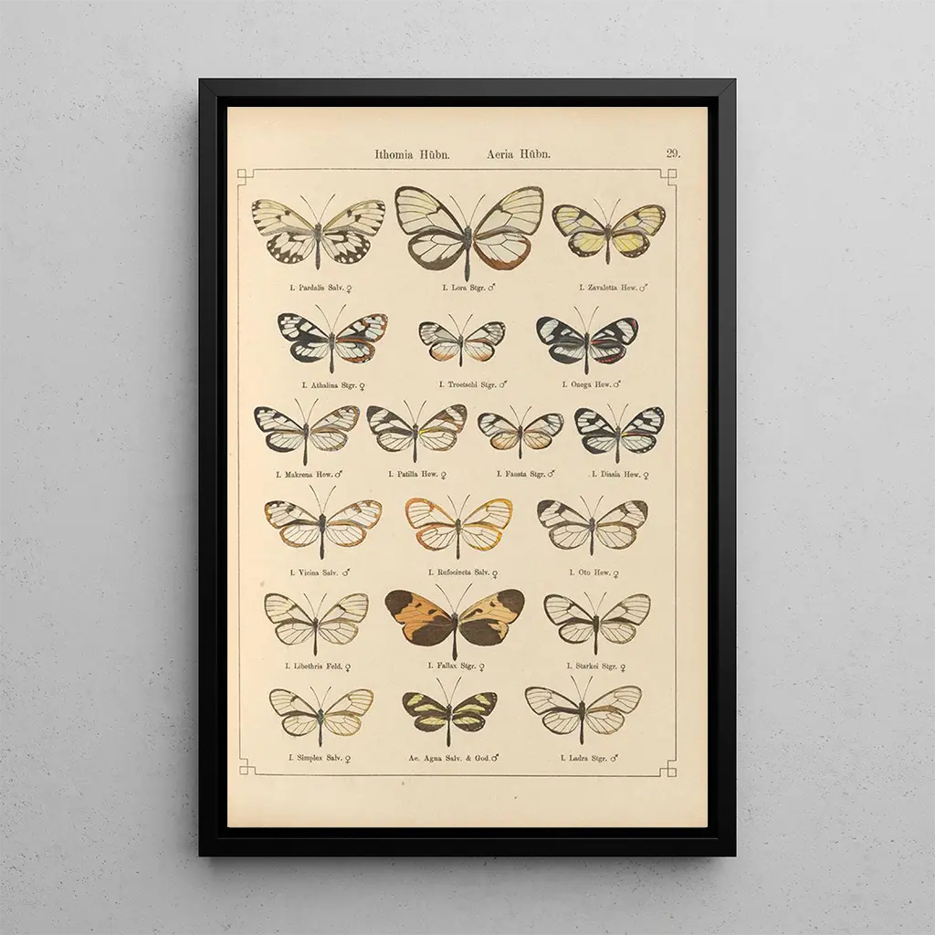 Die kunstdrucke des Werks "Papillons exotiques Pl029" von Otto Staudinger entführen uns in eine lebendige Welt, in der sich die Natur durch eine Palette leuchtender Farben ausdrückt. Jeder Schmetterling, sorgfältig detailliert, scheint auf der Leinwand zum Leben zu erwachen und lädt den Betrachter ein, die Zartheit ihrer Flügel zu bewundern. Die Nuancen von Blau, Gelb und Orange verschmelzen harmonisch und schaffen eine Atmosphäre, die sowohl fröhlich als auch beruhigend ist. Die Technik des Künstlers, die Präzision und Sensibilität verbindet, ermöglicht es, die Leichtigkeit und Anmut dieser fliegenden Kreaturen zu spüren und macht dieses Werk zu einem wahren Lobpreis auf die natürliche Schönheit.