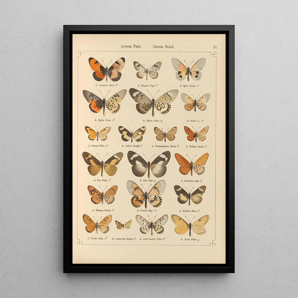 Die kunstdruck von Papillons exotiques Pl033 entführt uns in eine Welt, in der die Natur mit Glanz und Anmut spricht. Die Schmetterlinge, in ihrer ganzen Pracht dargestellt, zeigen lebendige und vielfältige Farbtöne, die vom leuchtenden Rot bis zum Smaragdgrün reichen. Die Technik von Staudinger, die Aquarell und Zeichnung verbindet, ehrt die zerbrechliche Schönheit dieser Kreaturen. Jedes Detail, von den Mustern der Flügel bis zu den zarten Schatten, ist sorgfältig ausgearbeitet und schafft eine Atmosphäre, die zugleich dynamisch und beruhigend ist, ideal für eine Flucht aus dem Alltag.