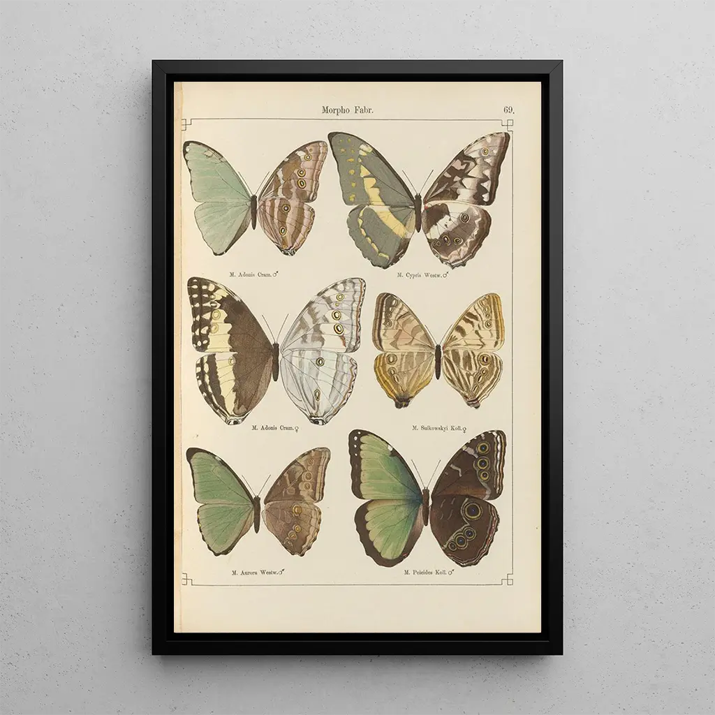 Die kunstdrucke von "Papillons exotiques Pl069" von Otto Staudinger sind eine wahre Ode an die Schönheit der Natur. Die lebendigen Farben der Flügel der Schmetterlinge, die von leuchtendem Blau bis zu goldenem Gelb reichen, verschmelzen harmonisch, um eine Atmosphäre zu schaffen, die sowohl fröhlich als auch beruhigend ist. Die Aquarelltechnik, die mit Feinfühligkeit eingesetzt wird, erweckt jedes Detail zum Leben, von den zarten Adern der Flügel bis zu den subtilen Schatten, die sie umgeben. Dieses Bild lädt zu einer aufmerksamen Betrachtung ein, bei der jeder Blick eine neue Nuance und eine neue Emotion offenbart, als ob die Schmetterlinge gleich davonfliegen würden.