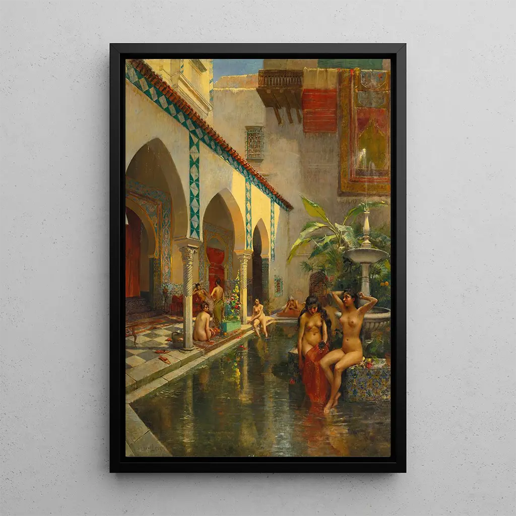 Eine exotische Hof: eine Flucht in ferne Horizonte Der kunstdruck "Eine exotische Hof" von Henri Victor Lesur entführt uns in eine lebendige Welt voller Farben und Licht. Dieses Gemälde, reich an Details, zeigt eine Alltagsszene in einem üppigen Umfeld, in dem die Natur harmonisch mit der Architektur verschmilzt. Lesur verwendet eine Palette warmer Farben, die die Hitze eines tropischen Klimas hervorrufen, während Schatten- und Lichtspiele eine fast magische Atmosphäre schaffen. Die Figuren, obwohl diskret, fügen dieser Komposition eine menschliche Dimension hinzu und laden den Betrachter ein, sich in diesem friedlichen Hof zu vorstellen, fern vom Tumult der modernen Welt. Henri Victor Lesur: ein Maler im Herzen des Impressionismus Henri Victor Lesur, aktiv gegen Ende des 19. Jahrhunderts, wird oft mit der impressionistischen Bewegung in Verbindung gebracht, obwohl er einen eigenen Stil entwickelt hat. Beeinflusst von den Landschaften und dem Licht seiner Reisen, konnte Lesur die Essenz seiner Motive mit einer einzigartigen Sensibilität einfangen. Seine Karriere war geprägt von einer ständigen Erforschung exotischer Themen, die eine Epoche widerspiegeln, in der Orientalismus die europäischen Künstler faszinierte. Durch seine Werke hat er dazu beigetragen, das französische künstlerische Erbe zu bereichern, und bietet gleichzeitig einen neuen Blick auf ferne Kulturen. Eine dekorative anschaffung mit vielfältigen vorteilen Der kunstdruck von "Eine exotische Hof" ist eine ideale Wahl, um Ihr Interieur zu verschönern, sei es im Wohnzimmer, im Büro oder im Schlafzimmer. Seine Druckqualität garantiert eine bemerkenswerte Treue zu den Farben und Details des Originalwerks, sodass Sie die Schönheit dieser Szene voll genießen können. Durch die Integration dieses Gemäldes in Ihre Dekoration verleihen Sie Ihrem Raum eine elegante und entdeckungsreiche Note und wecken gleichzeitig die Neugier Ihrer Gäste. Dieses Bild, eine wahre Einladung zum Reisen, wird Ihren Wohnraum mit einer warmen und einladenden Atmosphäre bereichern.