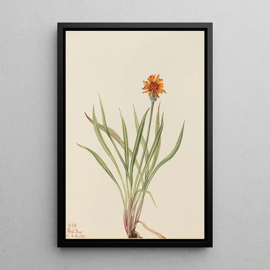 Falscher Löwenzahn Agoseris aurantiaca: eine zarte Darstellung der Natur Die reproduction des Falscher Löwenzahn Agoseris aurantiaca von Mary Vaux Walcott zeigt auf feine Weise die Schönheit der Wildblumen. Die lebendigen und leuchtenden Farben, die von strahlendem Gelb bis zu zartem Grün reichen, fangen die Essenz der Frühlingsflora ein. Die Aquarelltechnik, die von der Künstlerin verwendet wird, verleiht dem Werk Leichtigkeit und Transparenz und lädt den Betrachter ein, in eine Welt voller Sanftheit und Poesie einzutauchen. Jedes Detail ist sorgfältig wiedergegeben, von den zarten Blütenblättern bis zu den fein geschnittenen Blättern, und schafft eine Atmosphäre der Gelassenheit und des Staunens gegenüber der Natur. Mary Vaux Walcott: eine Pionierin der botanischen Kunst Mary Vaux Walcott, die Anfang des 20. Jahrhunderts aktiv war, ist bekannt für ihre zentrale Rolle in der Entwicklung der amerikanischen botanischen Kunst. Beeinflusst von den naturalistischen Bewegungen ihrer Zeit, verstand sie es, wissenschaftliche Präzision mit künstlerischer Sensibilität in ihren Werken zu verbinden. Ihre Illustrationen, oft inspiriert von ihren Reisen durch die Vereinigten Staaten, zeugen von tiefem Respekt für die Natur und dem Wunsch, sie zu bewahren. Als Mitglied der American Society of Botanists trug Walcott zur Dokumentation der nordamerikanischen Flora bei und wurde so zu einer bedeutenden Figur im Bereich der wissenschaftlichen Kunst. Eine dekorative Anschaffung mit vielfältigen Vorzügen Die reproduction des Gemäldes Falscher Löwenzahn Agoseris aurantiaca ist eine ideale Wahl, um Ihr Zuhause zu verschönern, sei es im Wohnzimmer, im Büro oder im Schlafzimmer. Die Druckqualität garantiert eine bemerkenswerte Farbtreue und Detailgenauigkeit des Originalwerks und bringt einen Hauch von Natur und Frische in Ihre Dekoration. Die ästhetische Anziehungskraft dieses Leinwandbildes liegt in seiner Fähigkeit, Gefühle von Ruhe und Verbundenheit mit der Umwelt hervorzurufen. Durch die Integration dieses Kunstwerks in Ihren Raum bieten Sie nicht nur ein dekoratives Element, sondern auch eine Hommage an die zerbrechliche Schönheit der Natur.