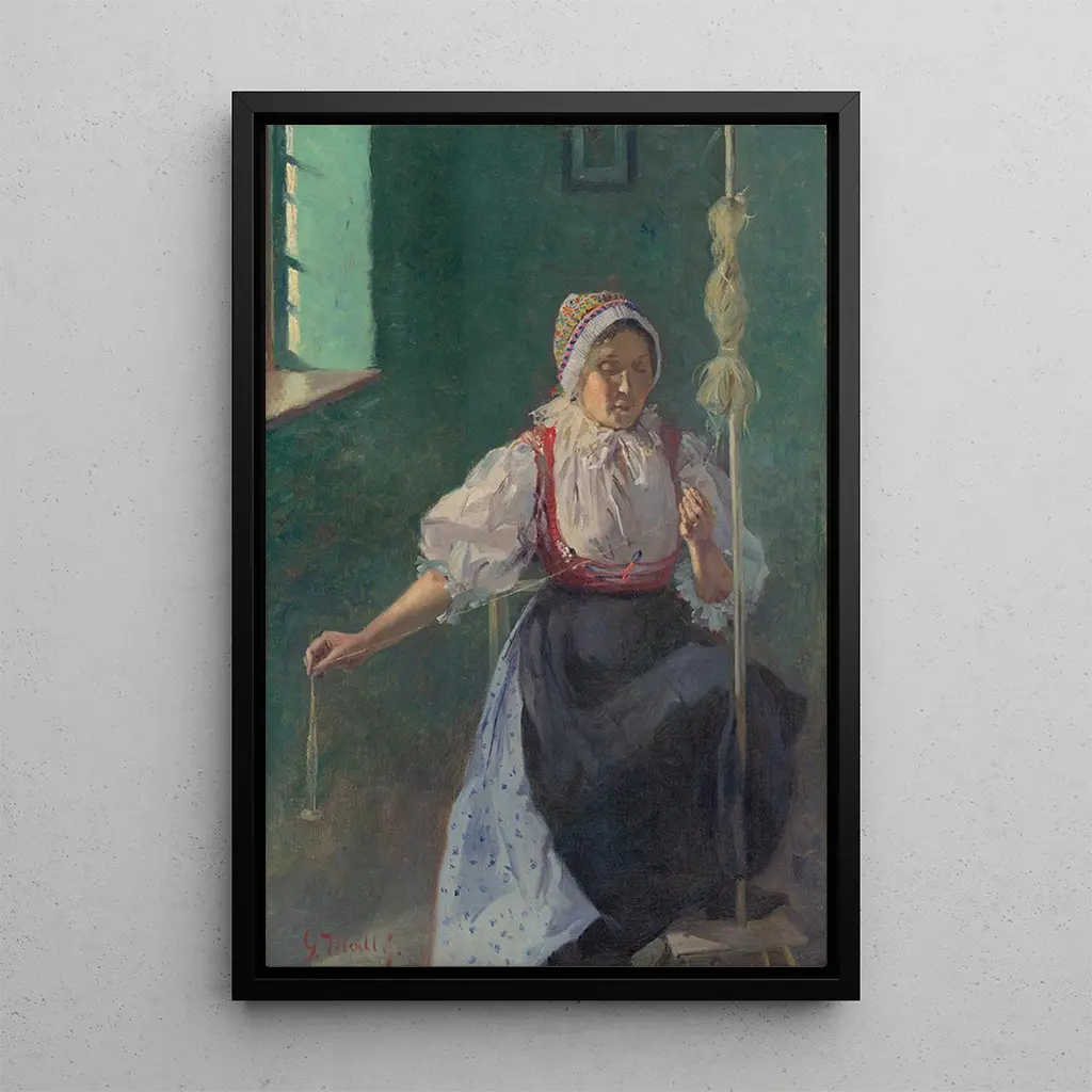 In "Fileuse" erfasst Gustav Mahler die Essenz eines friedlichen Moments, in dem die Zeit stillzustehen scheint. Das Leinwandbild, getaucht in sanfte und warme Farbtöne, evoziert eine Atmosphäre der Ruhe. Die fließenden Linien und zarten Formen zeichnen eine Frau, die in ihrer Tätigkeit vertieft ist, und symbolisieren die Schönheit der manuellen Arbeit. Das sanfte Licht, das die Szene erhellt, schafft einen subtilen Kontrast und hebt die Details des Stoffes sowie die Konzentration der Spinnerin hervor. Dieses Werk lädt zu einer introspektiven Betrachtung ein, bei der jeder Blick eine neue Nuance des Alltags offenbart.