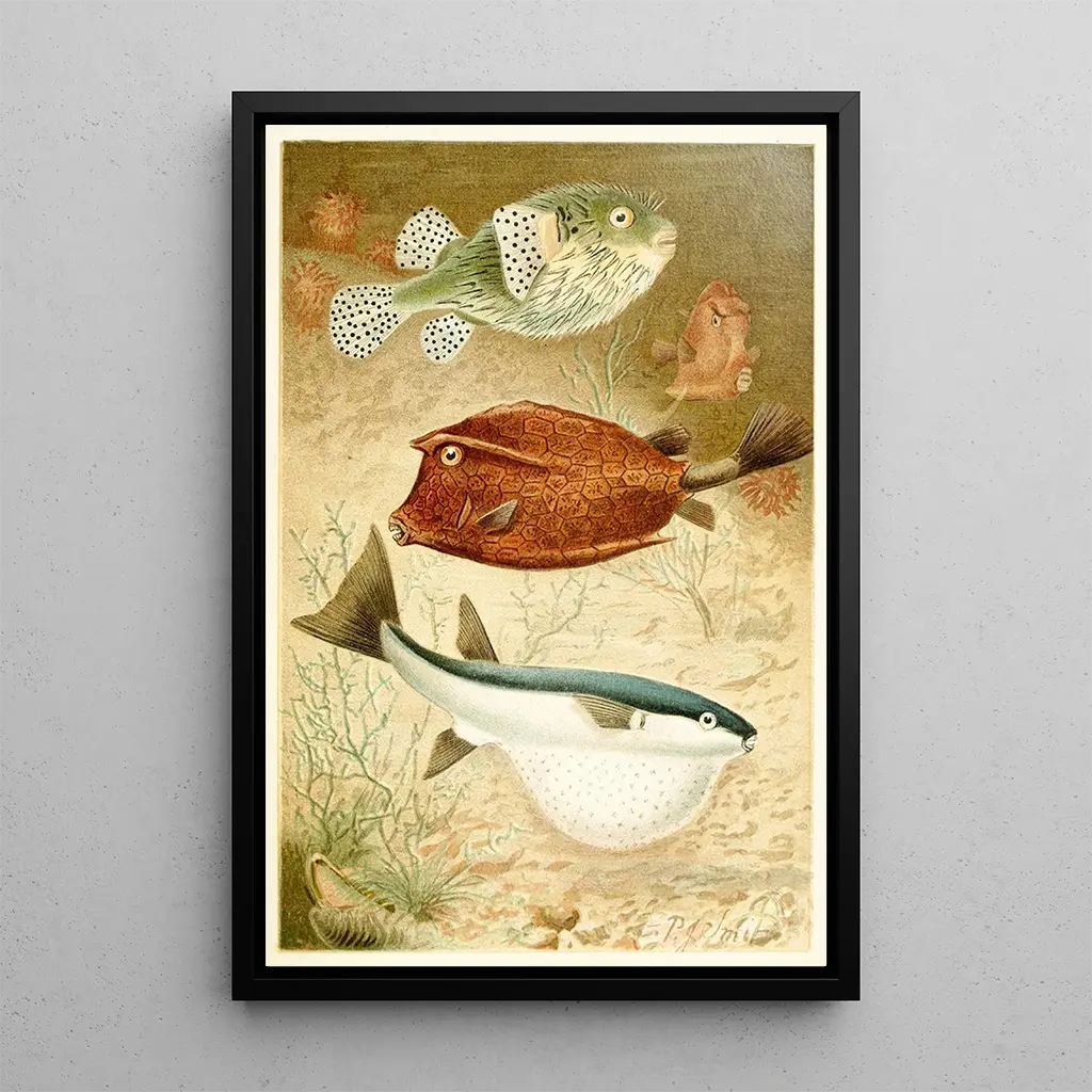Poisson-globus und [[Poisson-coffre]] : ein faszinierendes Duo aus den Meeren Das Gemälde "Poisson-globus und Poisson-coffre" von Pierre Jacques Smit entführt uns in eine bunte und texturreiche Unterwasserwelt. Die Fische, mit ihren markanten Formen und lebendigen Mustern, sind mit einer Präzision dargestellt, die auf die sorgfältige Beobachtung des Künstlers hinweist. Die Nuancen von Blau, Gelb und Orange verschmelzen zu einer lebendigen und dynamischen Atmosphäre. Die Technik von Smit, die Realismus und impressionistische Akzente verbindet, erweckt diese aquatische Szene zum Leben und lädt den Betrachter ein, in das geheimnisvolle Universum der Meeresgründe einzutauchen. Pierre Jacques Smit: ein Entdecker der Tiefen Pierre Jacques Smit, aktiv zu Beginn des 20. Jahrhunderts, ist bekannt für seine Werke, die die Schönheit des Meereslebens feiern. Beeinflusst von den künstlerischen Bewegungen seiner Zeit, entwickelte er einen Stil, der Präzision und Ausdruckskraft vereint. Smit widmete einen großen Teil seiner Karriere der Erforschung der Meereskreaturen und versuchte, ihre Essenz durch Farbe und Licht einzufangen. Sein Werk, insbesondere "Poisson-globus und Poisson-coffre", ist Teil einer künstlerischen Tradition, die die Natur und Biodiversität würdigt und gleichzeitig eine Epoche widerspiegelt, in der maritime Kunst florierte. Eine dekorative Anfertigung mit vielfältigen Vorzügen Die kunstdruck-Reproduktion des Gemäldes "Poisson-globus und Poisson-coffre" ist eine dekorative Wahl, die jeden Raum aufwertet. Ob im Wohnzimmer, Büro oder Schlafzimmer, dieses Leinwandbild bringt einen Hauch von Exotik und Farbe. Die Druckqualität garantiert eine außergewöhnliche Treue zu den Details und Nuancen des Originalwerks, sodass man das Talent von Smit voll und ganz schätzen kann. Der ästhetische Reiz dieser Reproduktion liegt in ihrer Fähigkeit, einen Raum zu verwandeln, und bietet ein Fenster in die Meereswelt, das bei jedem Blick Staunen hervorruft.