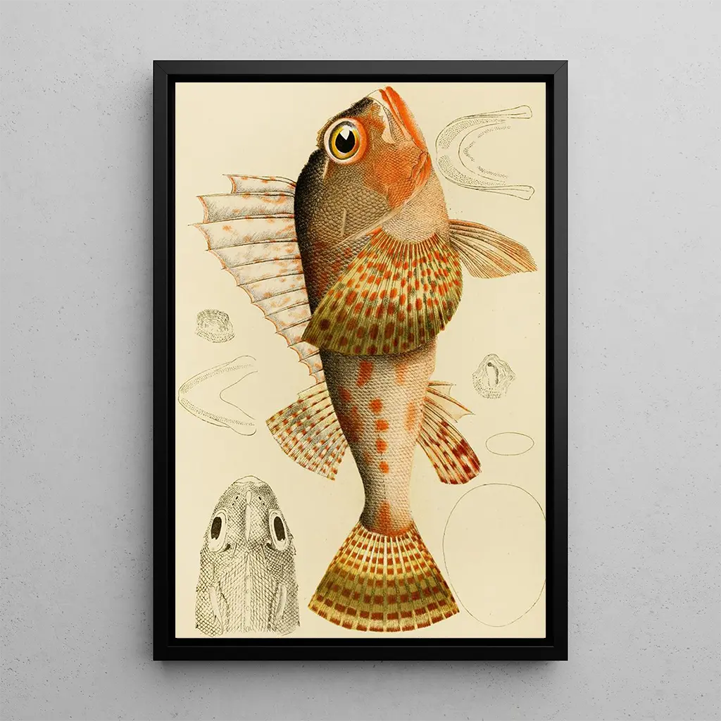 Poissons XI : eine farbenfrohe Symphonie der Tiefen 'Poissons XI' von Frederick McCoy ist ein Werk, das die Magie der Ozeane durch eine Palette leuchtender Farben evoziert. Die Fische, dargestellt in dynamischen Posen, scheinen unter der Wasseroberfläche zu tanzen und schaffen eine lebendige und fröhliche Atmosphäre. Die Technik von McCoy, die fließende Pinselstriche mit feinen Details verbindet, erweckt jedes Meereswesen zum Leben. Dieses Gemälde lädt zu einer visuellen Erkundung der Tiefen ein, bei der jeder Blick eine neue Nuance der Schönheit offenbart. Frederick McCoy : ein Pionier der maritimen Kunst Frederick McCoy, aktiv im 19. Jahrhundert, hat sich durch seine Darstellungen der Meeresfauna einen Namen in der Kunstwelt gemacht. Beeinflusst von den künstlerischen Strömungen seiner Zeit, entwickelte er einen einzigartigen Stil, der Realismus und Impressionismus vereint. Seine Reisen entlang der Küsten bereicherten sein Repertoire, sodass er eine Vielzahl von Meeresarten beobachten und malen konnte. McCoy spielte auch eine wichtige Rolle bei der Sensibilisierung für den Schutz der Ozeane, und seine Werke, wie 'Poissons XI', zeugen von seinem Engagement für die Natur. Eine dekorative Anschaffung mit vielfältigen Vorzügen Der kunstdruck von 'Poissons XI' ist eine perfekte Wahl, um Ihren Wohnraum zu verschönern. Ob im Wohnzimmer, Schlafzimmer oder Büro – dieses Bild bringt einen Farbtupfer und Dynamik in Ihre Dekoration. Die Druckqualität garantiert eine bemerkenswerte Treue zu den Details und Farben des Originalwerks, wodurch jedes Stück einzigartig wird. Durch die Integration dieses Kunstwerks in Ihr Interieur schaffen Sie eine warme und einladende Atmosphäre und feiern gleichzeitig die Schönheit der Ozeane.