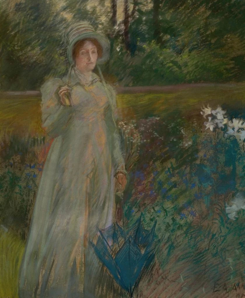Kunstdruck | Frau im Garten - Edwin Austin Abbey